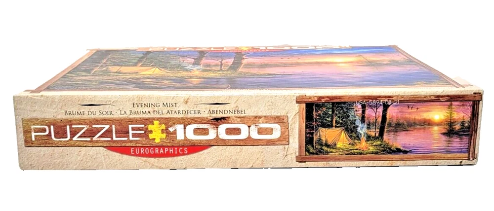 19 1/4" x 26 5/8" Piece together a beautiful landscape with this Eurographics puzzle, featuring a beautiful depiction of "Evening Mist" by Abraham Hunter. With 1000 pieces, this contemporary puzzle offers a fun and challenging activity for puzzle enthusiasts of all ages. The vibrant multi-colored design is sure to capture your attention, and the high-quality cardboard material ensures that the puzzle will withstand repeated use. Perfect for an evening at home or a rainy day, this puzzle is a great addition to any toy or hobby collection. Doing puzzles has some hidden benefits. Excellent qualities : Cultivate concentration, patience, and temper your will Movement development : Train hand-eye coordination and precise small movements Spatial intelligence : Improve visual discrimination of colors and shapes Critical thinking ability : Understand the relationship between parts and the whole, and draw inferences from one example to explore the future Relaxes your mind : Relieve work pressure and release yourself Brain development : Enhance memory and may help prevent or slow brain degeneration We did not work the puzzle or count the pieces, but we verify the number count at your request. Each item we ship is carefully packaged to prevent any damage and is shipped immediately with tracking.