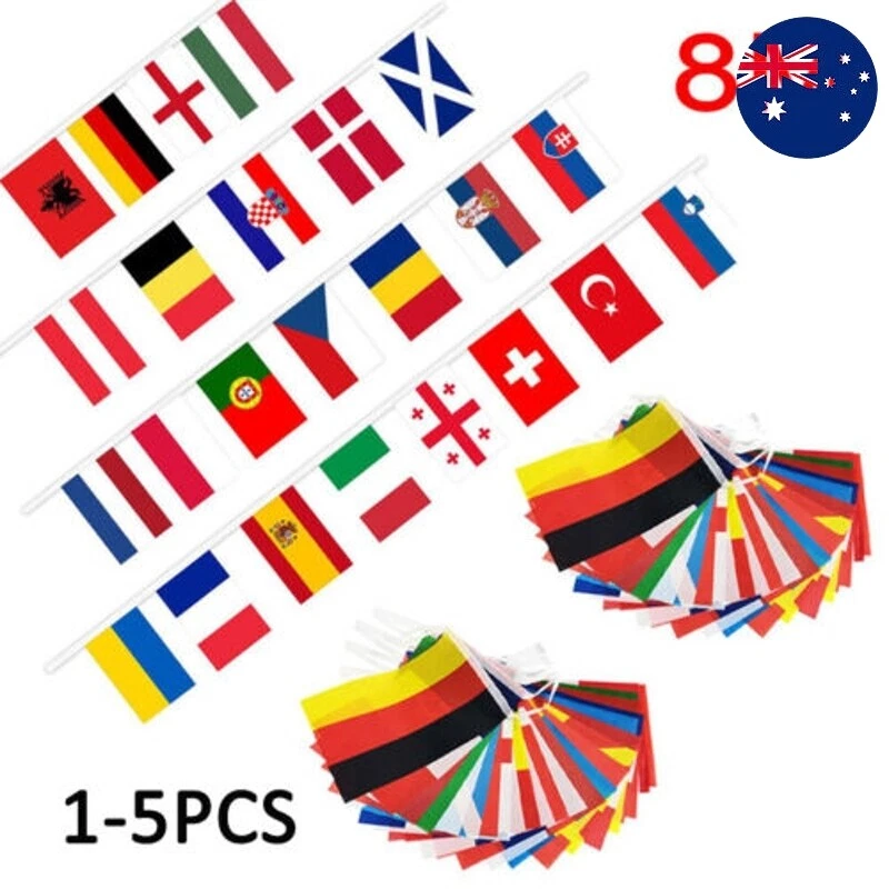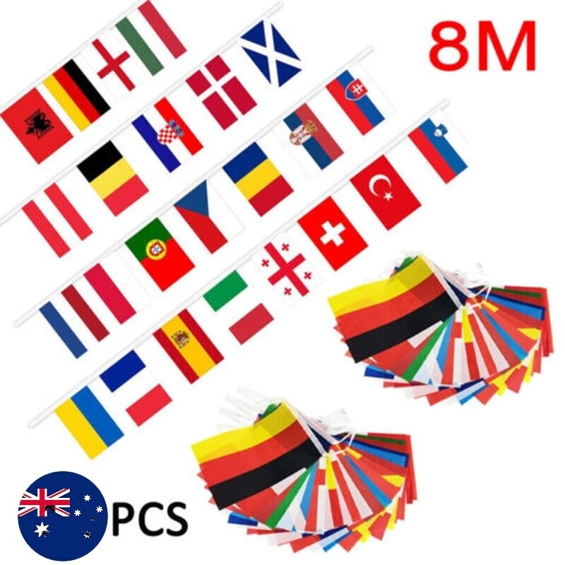 International Bunting - 8m Perfect for Euro 2024 24 Team Flag Country Bunting - Countries as pictured 8 METRES - (Approx) Great Quality and durable fabric bunting with bright colours to celebrate different events. Double-sided bunting Material: Polyester Bunting Length: 8 Metres lengths Flag Size: 21*14cm, 24 Flags On 14/06/2024 at 16:24:22 AEST, seller added the following information: On 09/10/2024 at 23:21:35 AEDT, seller added the following information: On 10/10/2024 at 15:11:37 AEDT, seller added the following information: