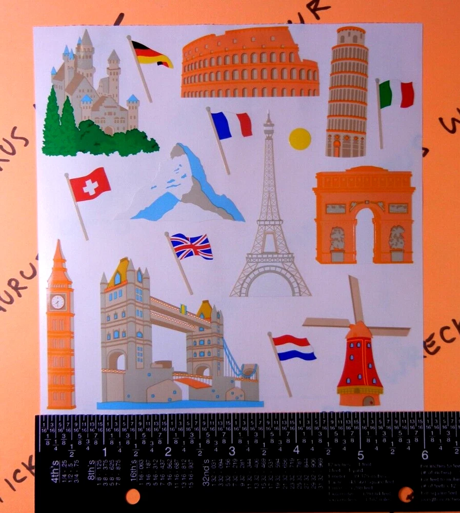 European Landmarks Vintage Mrs. Grossman's Large Sticker Sheet (Flags Right)