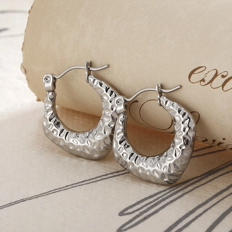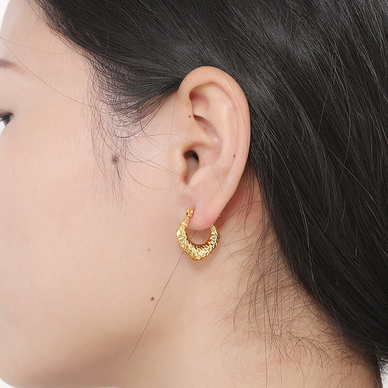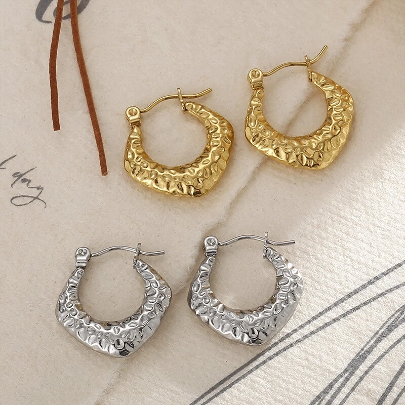 European and American retro geometric C-shaped earrings titanium steel earrings
