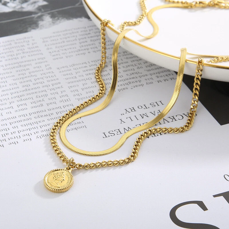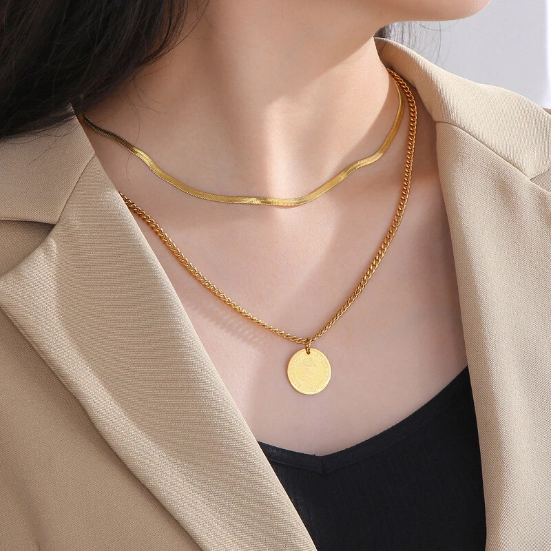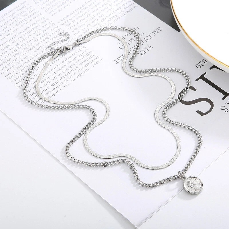 European titanium steel double layer wear women's necklace