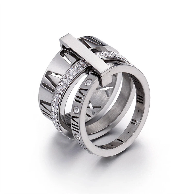 European titanium steel ring with diamond Roman numerals stainless steel ring