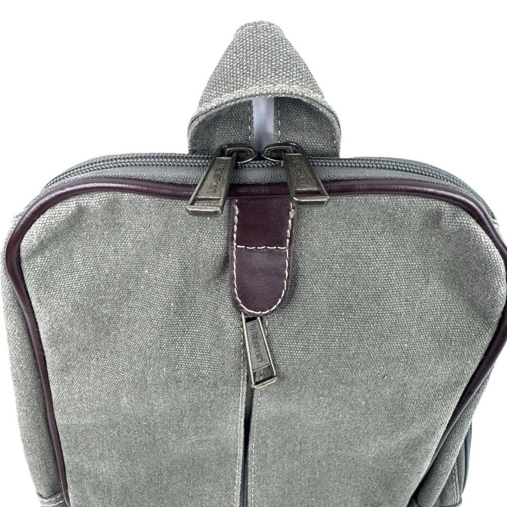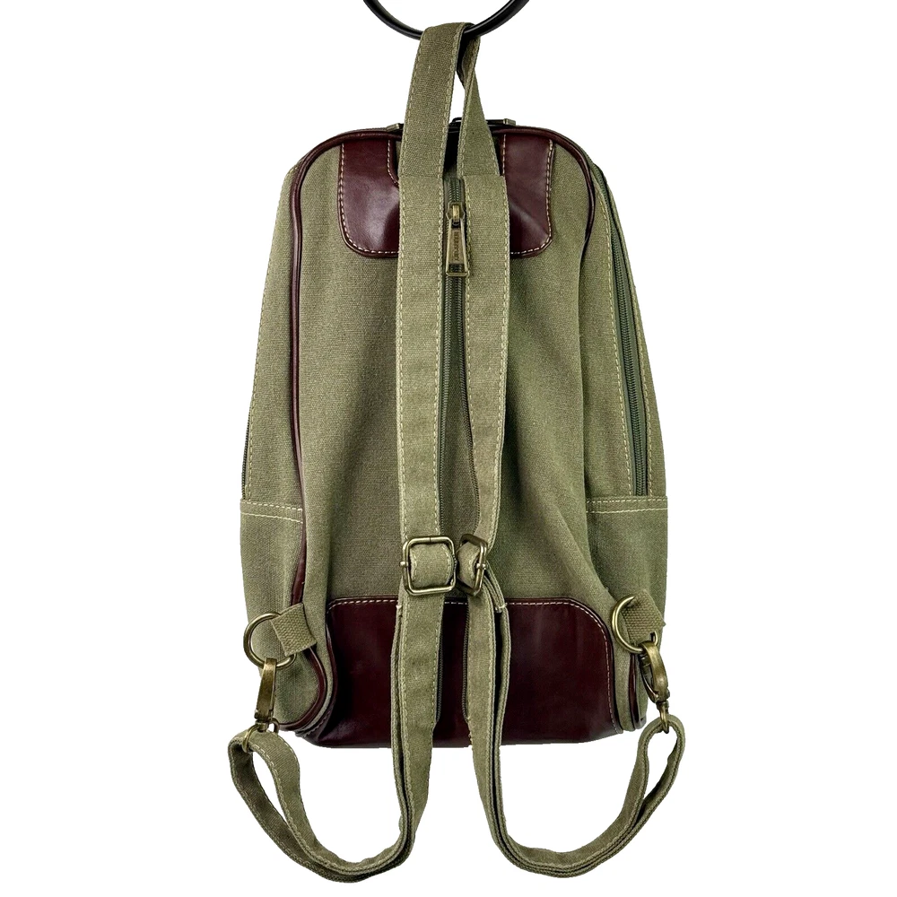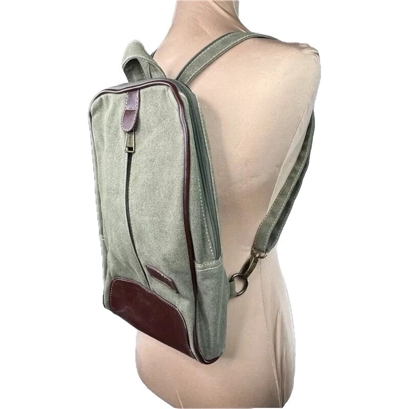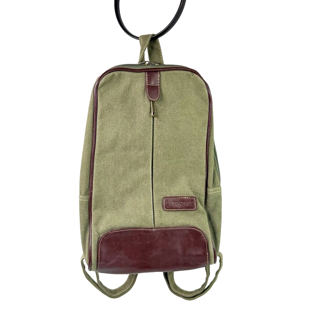 Eurosport Canvas Backpack Sling Crossbody Bag Green w Brown Faux Leather Accent