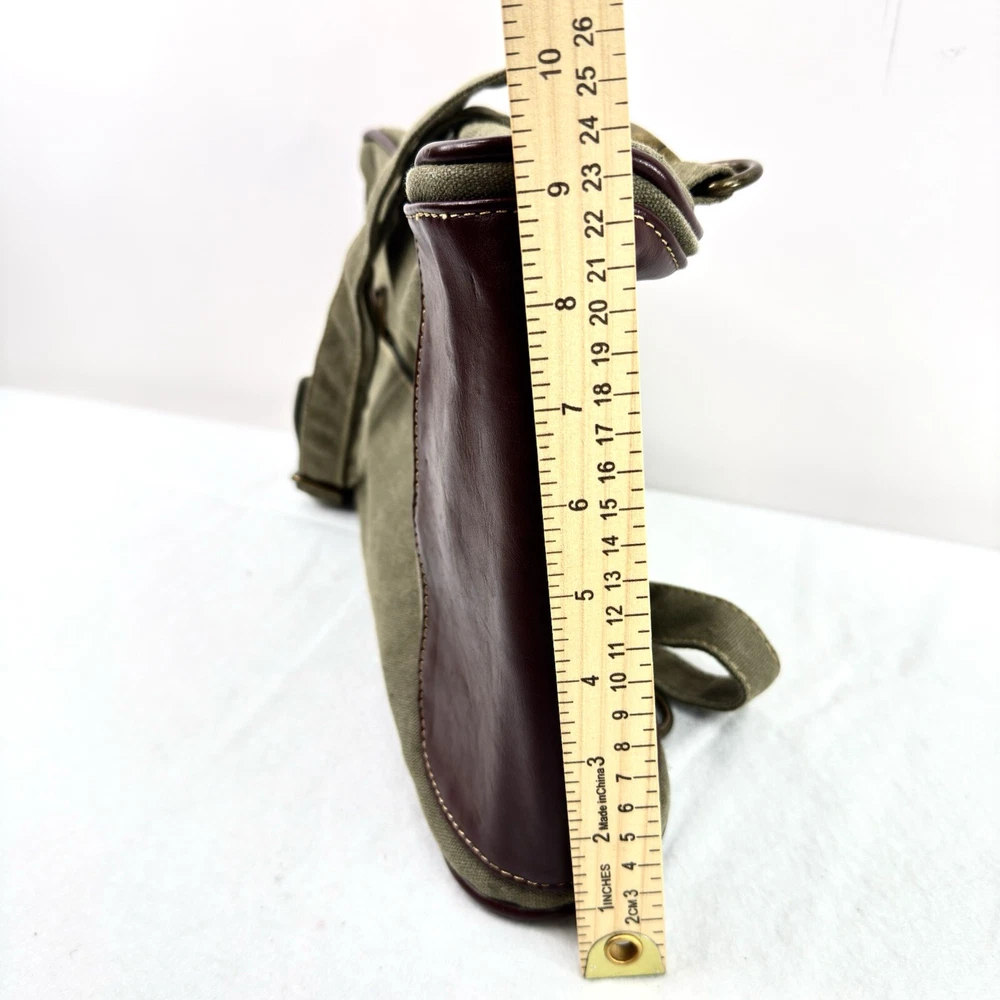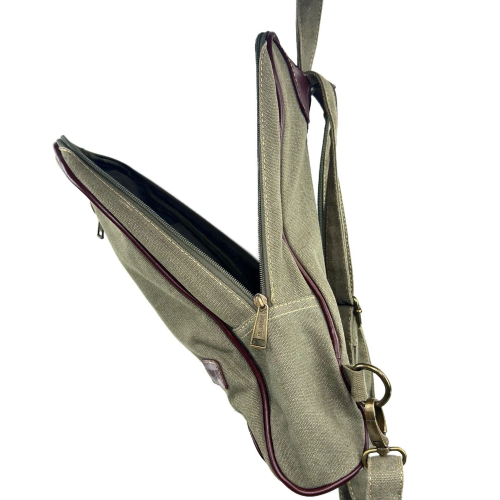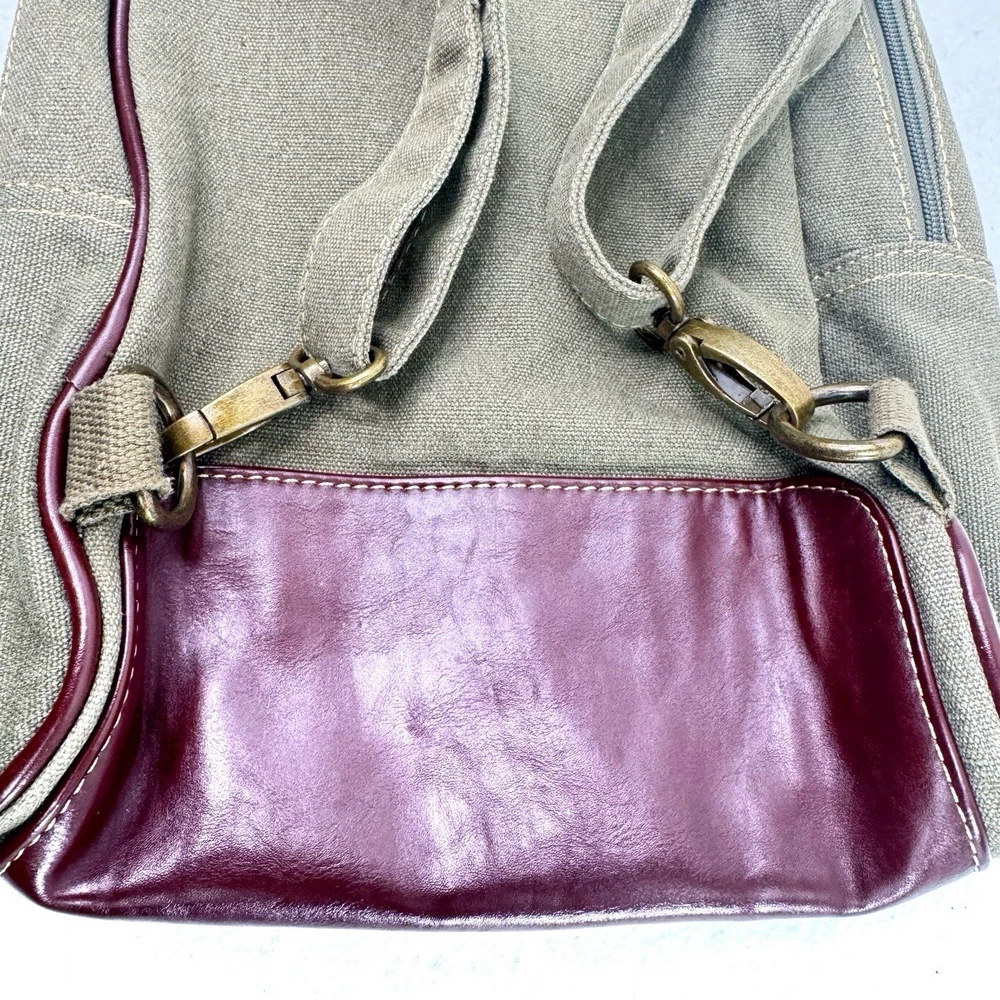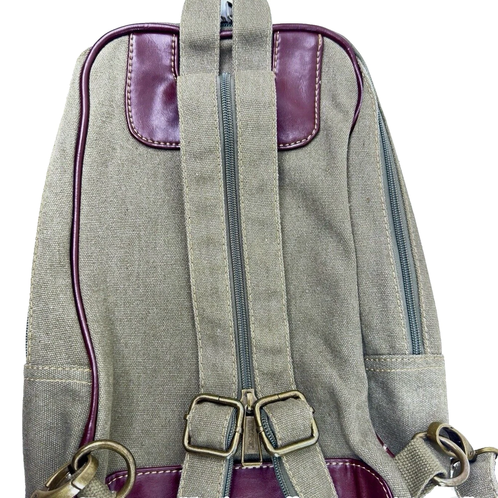 Eurosport Canvas Backpack Sling Crossbody Bag Green w Brown Faux Leather Accent