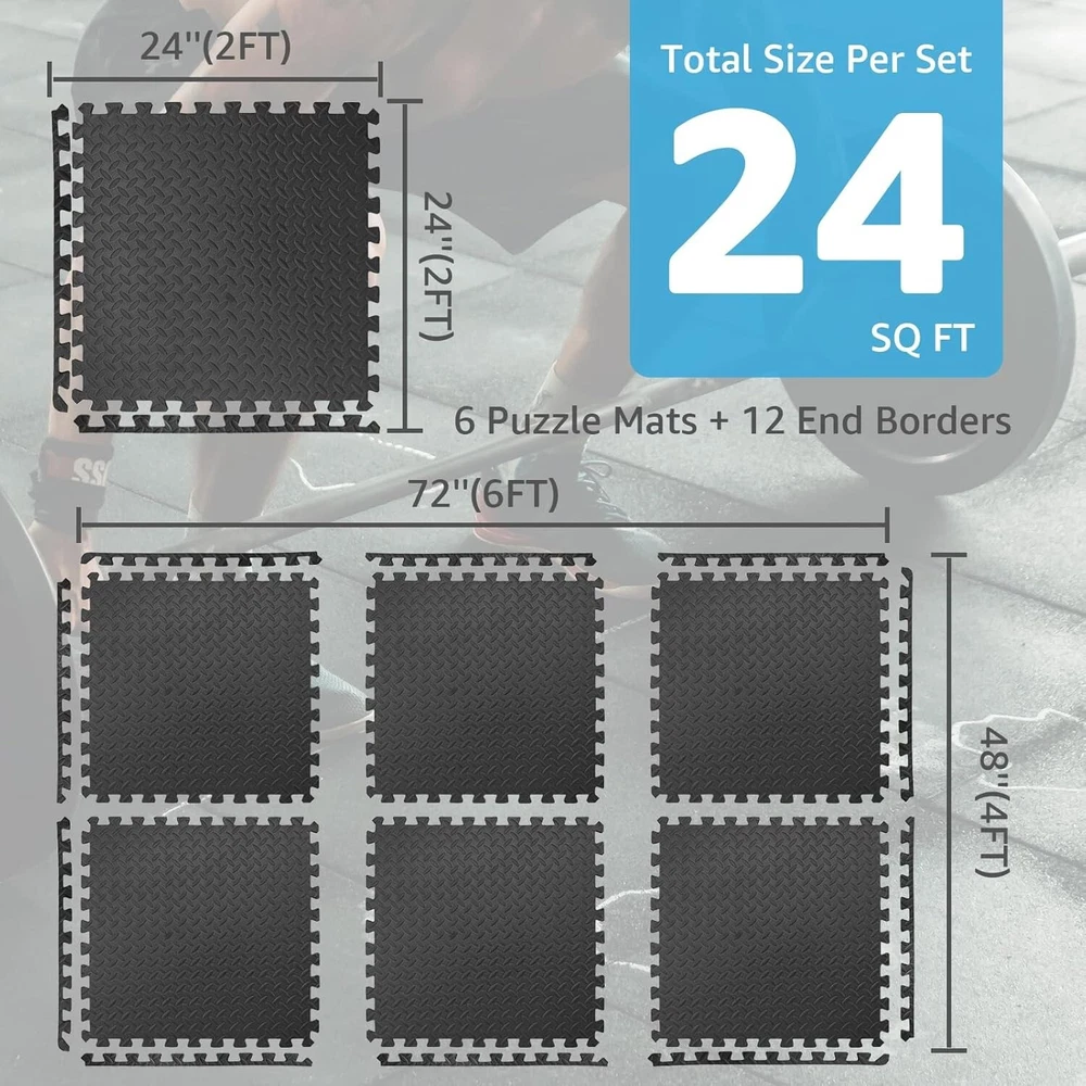 Eva Puzzle Exercise Mats, 1/2” and 3/4” Thick Foam Interlocking Tiles for Gyms, Flooring, Workout, Gym Equipments, Pack of 6/12 ✅ Thickness & Comfort: Experience enhanced cushioning that protects your joints and ensures a comfortable workout session every time. ✅ Durability: Invest in long-lasting quality; our mat is designed to withstand regular and intense workouts without showing signs of wear. ✅ Ease of Cleaning: Sweat it out without the cleanup stress; our mats are crafted for quick and simple wipe-downs post-exercise. ✅ Non-slip Surface: Safety first! Train confidently with our mat's grip-enhancing surface, ensuring stability even during the most rigorous routines. 💪 Storage: Designed for compact storage, our mat easily fits in tight spaces, making it perfect for both home and on-the-go workouts.