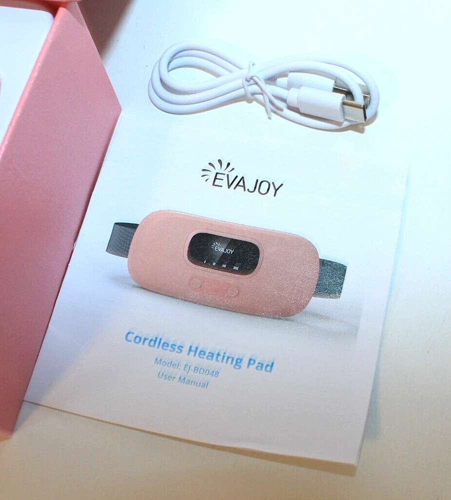 (pc) Evajoy Cordless Wearable Heating Pad Take your heat on the go! Small, Wearable Pink Heating Pad Perfect for Lower Back, but can be used elsewhere New: Open Box small scratch on screen Please be sure to zoom-in on photos for more details ... if you need to know anything else, just a sk! Thanks for looking at this listing! Payment and Shipping Info : Payment can be made through PayPal or Cash upon Pickup. International Buyers: If you don't see a shipping price for your country please ask before purchasing. I may be able to add shipping options for you, but some items I do not ship internationally. Also, you are responsible for import/customs/duty fees incurred. I almost always ship within 1 business day! Free Tracking on all US orders. I'm happy to combine shipping when possible. When purchasing more than one item just wait for an invoice that will reflect combined shipping savings. If you'd like a quote ahead of time feel free to contact me. Additional Info: Your satisfaction is extremely important to me. Once you receive your item/s and are happy with them I hope you will consider leaving me positive feedback, as I will be doing the same for you. If you are not satisfied with your item please contact me immediately to arrange for a return/refund. Thank you for your interest, and please don't hesitate to contact me with any questions!