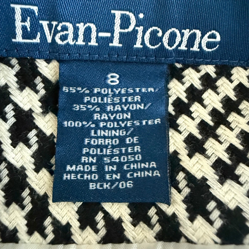 Evan Picone Womens Houndstooth Midi Skirt Black White Size 8 Lined Classic Work Evan Picone womens black and white houndstooth midi skirt size 8. Features a classic black and white houndstooth pattern, side zipper closure, and full lining for comfort. Ideal for office wear, business casual looks, or classic preppy styling. Condition: Excellent preowned condition with no flaws. Features: Black and white houndstooth pattern Side zip closure Fully lined Classic mid-length cut Fast shipping! I'm happy to answer questions. Evan Picone, womens skirt, houndstooth skirt, midi skirt, size 8, classic work skirt, office skirt, black white skirt, lined skirt, preppy style, business casual, vintage inspired, pencil skirt