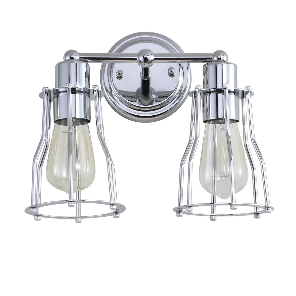 Define your bathroom or vanity space with the handsome industrial look of this sconce, which can be hung in either direction according to your preference. This classic industrial cage bath light features a hand-worked frame and round wall plate in a polished finish. Edison-inspired bulbs add a vintage touch within the fixture, while the machined details of the shade cage evoke the turn of the century, when exposed bulbs were in vogue as only the most affluent households had upgraded to electricity from candlelight. This trend-forward, yet classic style is sure to be a classic for another century to come. Features:Industrial and modern, add a sleek element to your rustic décor with this bathroom sconce or vanity light Fully reversible, you can choose to hang the sconce in either North-South Free Shipping Over $49.99* Details Evelyn Metal Vanity Light, by JONATHAN Y Product Description: Define your bathroom or vanity space with the handsome industrial look of this sconce, which can be hung in either direction according to your preference. This classic industrial cage bath light features a hand-worked frame and round wall plate in a polished finish. Edison-inspired bulbs add a vintage touch within the fixture, while the machined details of the shade cage evoke the turn of the century, when exposed bulbs were in vogue as only the most affluent households had upgraded to electricity from candlelight. This trend-forward, yet classic style is sure to be a classic for another century to come. Features: Industrial and modern, add a sleek element to your rustic décor with this bathroom sconce or vanity light Fully reversible, you can choose to hang the sconce in either North-South orientation Takes two bulbs and compatible with any 9W LED or 40W Type "A" or 13W CFL 25W Edison bulb included As this fixture must be hardwired, we recommend a professional electrician manage installation ColorMetal Body MaterialMetal IncludesOne (1) lamp Assembly Required Dimensions: Lamp10.38 inches high x 12.5 inches wide x 7.5 inches deep About us: You see a lamp. We see a decorative work of art. A perfectly curved shade casts a dramatic shadow on a floor. Compatible with LED lightbulbs as easy on the environment as they are on the eyes. The JONATHAN Y Lighting collection considers every detail from impeccably sourced materials to designer styling. And our prices are so attractive, we've transformed a functional necessity into a fashion accessory. JONATHAN Y Lighting - a fashion revolution in home decor.