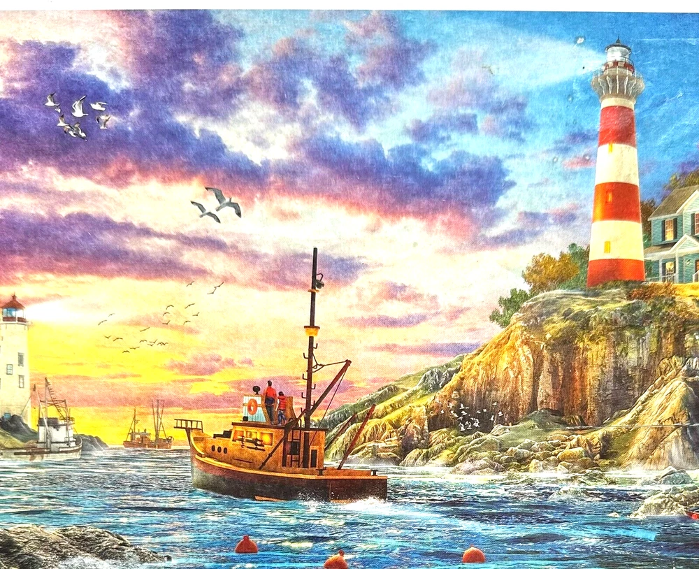 Evening Fishing COMP 1000 pc Puzzle Lighthouses Trawlers Rocks Buoys Hillside Dangerous Inlet Buy more than one item and save a lot on postage! I am happy to combine shipping on multiple items by weight. I will refund any overage paid. Please look at my site joycescorner for additional puzzles and other items. I usually add a few different one each week. Feel free to contact me if you have any questions. I try to ship items within 2 business days of completed payment. Thank you for looking!