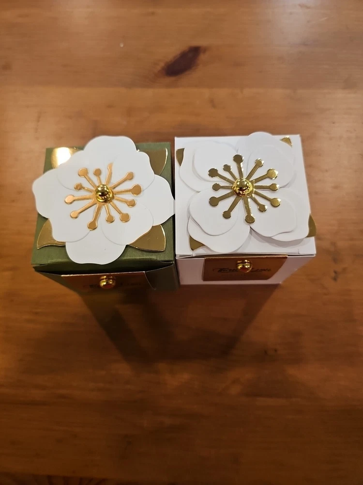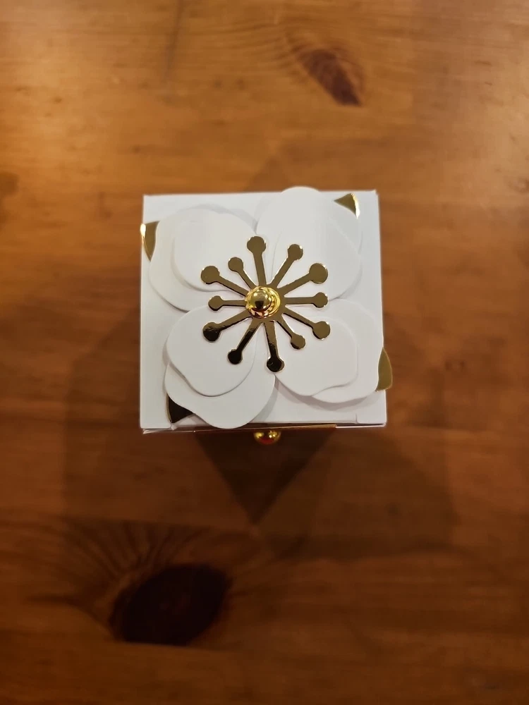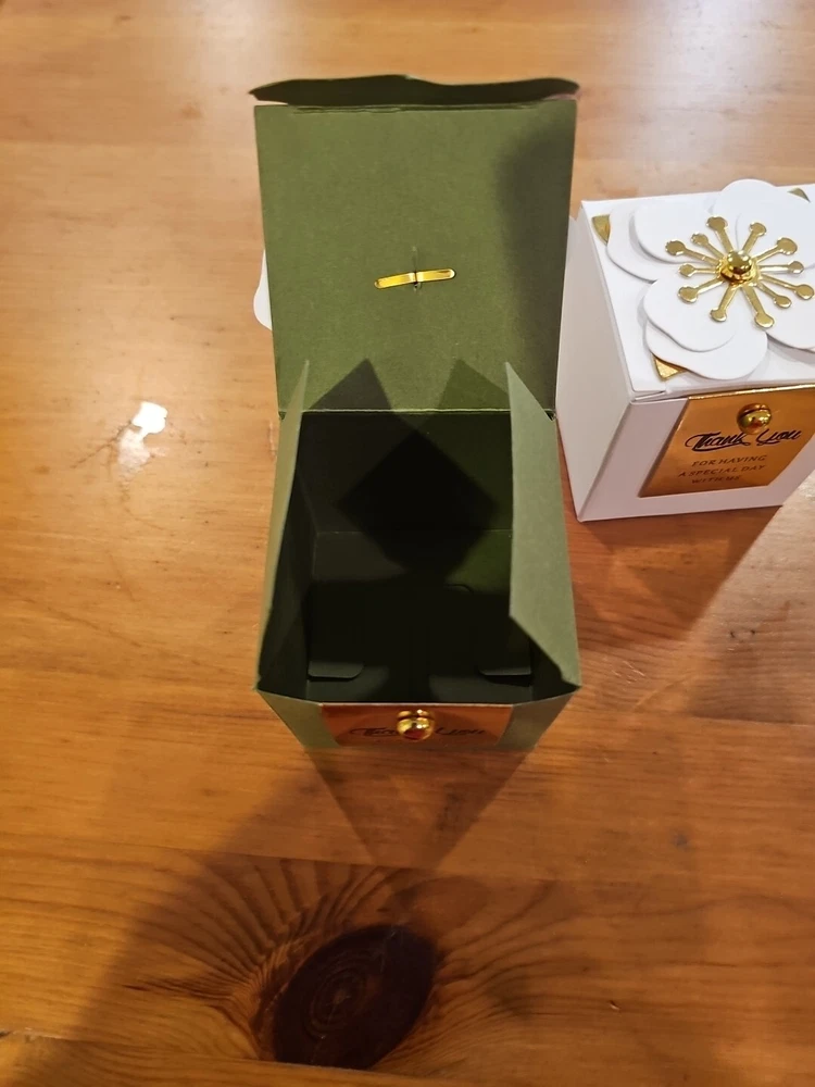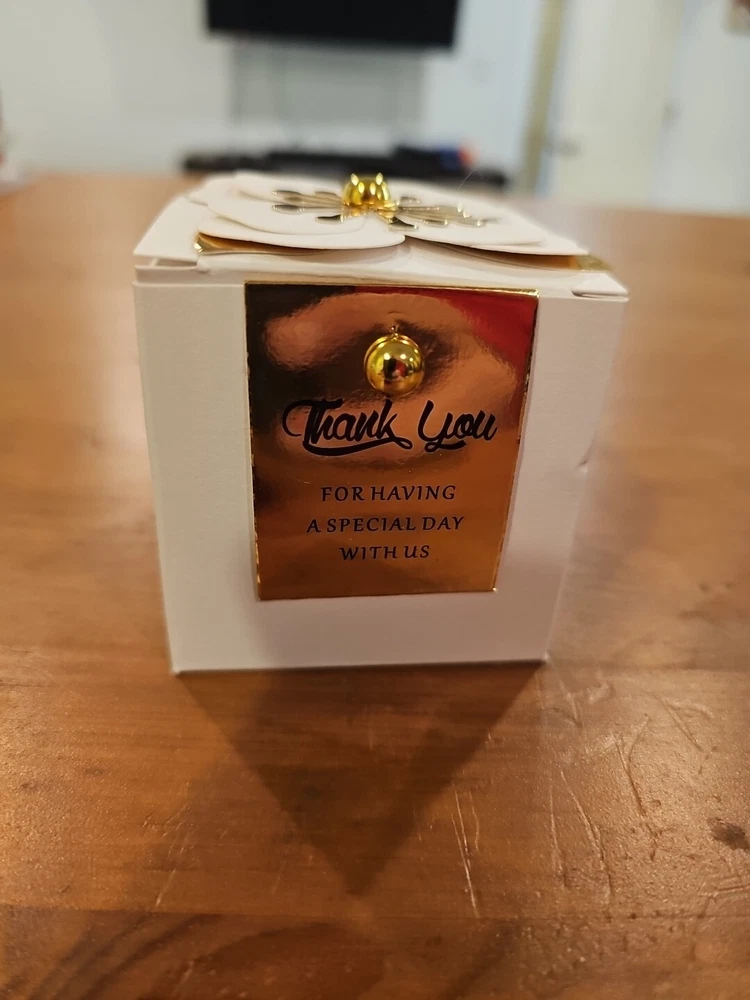 Measuring at 2.6 inches in length, height, and width, this candy box is spacious enough to hold your favorite treats. It is perfect for weddings, showers, or any other special occasion. The box features a flower design.