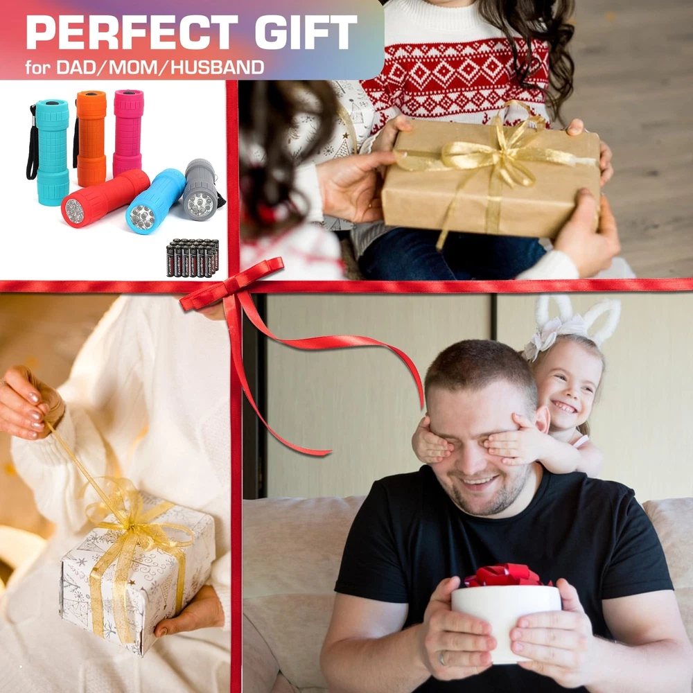 EverBrite 9-LED Flashlight 6-Pack Compact Handheld Torch Assorted Colors with Lanyard 3AAA Battery Included (Hurricane Supplies, Camping), Gift to Halloween, Christmas Product Details Color: White Light Brand: EverBrite MPN: E000056A UPC: 820909738824 EAN: 0820909738824 Special Feature: Durable,Lightweight,Resistant Color: White Light Power Source: Battery Powered Light Source Type: LED Material: Plastic Is Discontinued By Manufacturer ‏ : ‎ No Product Dimensions ‏ : ‎ 1.26 x 1.26 x 4.72 inches; 12.7 ounces Item model number ‏ : ‎ E000056A Batteries ‏ : ‎ 18 AAA batteries required. (included) Date First Available ‏ : ‎ May 26, 2017 Manufacturer ‏ : ‎ HANGZHOU GREATSTAR INDUSTRIAL CO.,LTD Country of Origin ‏ : ‎ China Customer Reviews: 4.7 4.7 out of 5 stars 16,249 ratings Special Feature: ‎Durable,Lightweight,Resistant Color: ‎White Light Power Source: ‎Battery Powered Light Source Type: ‎LED Material: ‎Plastic Included Components: ‎6pc Flashlights; 18× AAA Carbon Batteries Product Dimensions: ‎3.74"D x 1.18"W x 1.18"H Voltage: ‎4.5 Volts Battery Cell Composition: ‎Alkaline Item Weight: ‎0.36 Kilograms Number of Batteries: ‎18 AAA batteries required. (included) Water Resistance Level: ‎Not Water Resistant Brand: ‎EverBrite Brightness: ‎20 Lumen Style: ‎Casual Recommended Uses For Product: ‎[MULTI] Manufacturer: ‎HANGZHOU GREATSTAR INDUSTRIAL CO.,LTD UPC: ‎820909738824 Part Number: ‎E000056A Item Weight: ‎12.7 ounces Country of Origin: ‎China Item model number: ‎E000056A Batteries: ‎18 AAA batteries required. (included) Is Discontinued By Manufacturer: ‎No Item Package Quantity: ‎6 Special Features: ‎Durable,Lightweight,Resistant Batteries Included?: ‎Yes Batteries Required?: ‎Yes Date First Available: May 26, 2017 Exceptional Value - (6) pack 9-LED flashlights AND (18) total AAA batteries INCLUDED( Each flashlight requires 3AAA batteries). Powerful Beam: Offers a 59-foot beam range, ideal for walking in the dark or finding your way during power outages. Vibrant Colors: Available in 6 fun colors - Pink, Red, Orange, Gray, Teal, and Blue, making them easy to spot. Portable Design: Lightweight and compact, perfect for on-the-go use like camping, hiking, or walking the dog. Durable and Secure: Impact-resistant body with slip-proof case and lanyard for added protection, great for outdoor adventures and household use.