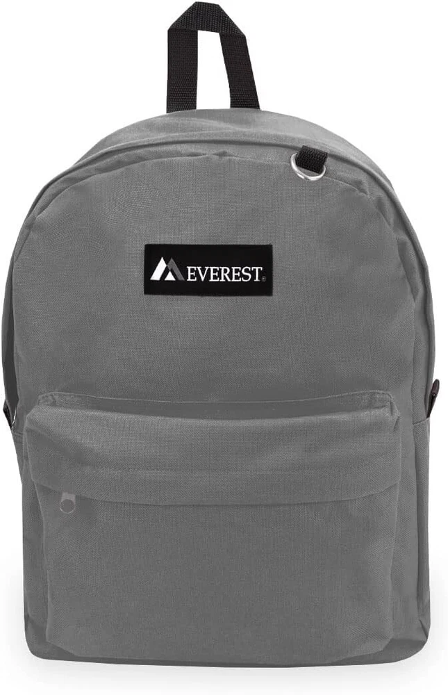 Everest Backpack Book Bag - Back to School Classic Dark Gray, Large Style & Size Product Details: The Everest is a traditional backpack in a streamlined modern silhouette. Easy access front zippered pocket. Comfortable padded back panel. Ergonomic shoulder straps. Large main compartment. Manufacturers Lifetime Warranty. Convenient key ring. Brand : Everest Dimensions: Material: 600D Polyester. Overall Size: 16.5 x 13 x 6.5 in. Capacity: 1340 cu in / 22 L. Weight 1 lb. Shipping Policy: Please allow 1-3 days to process order Return Policy: We have a 60 day return policy. Free returns on select items. Return items within 60 days in the original condition received, in order to receive refund.