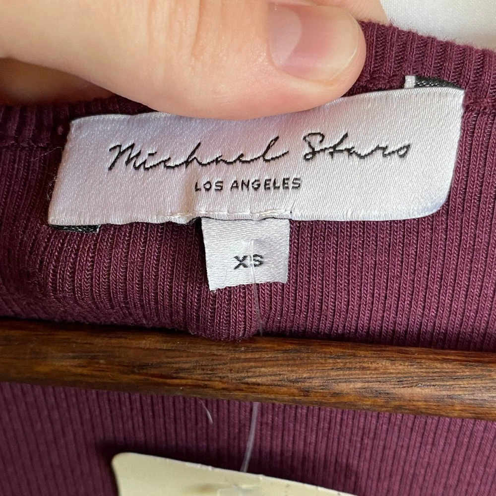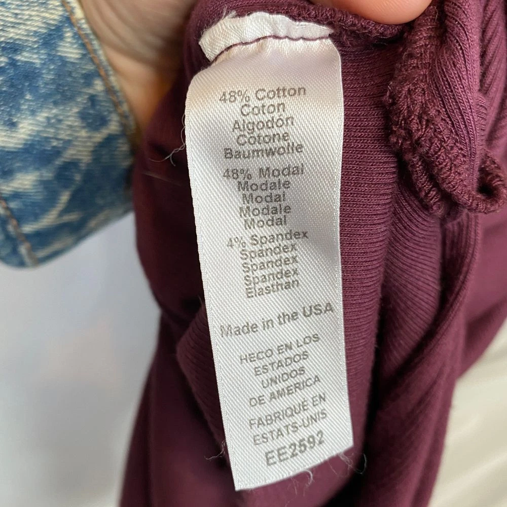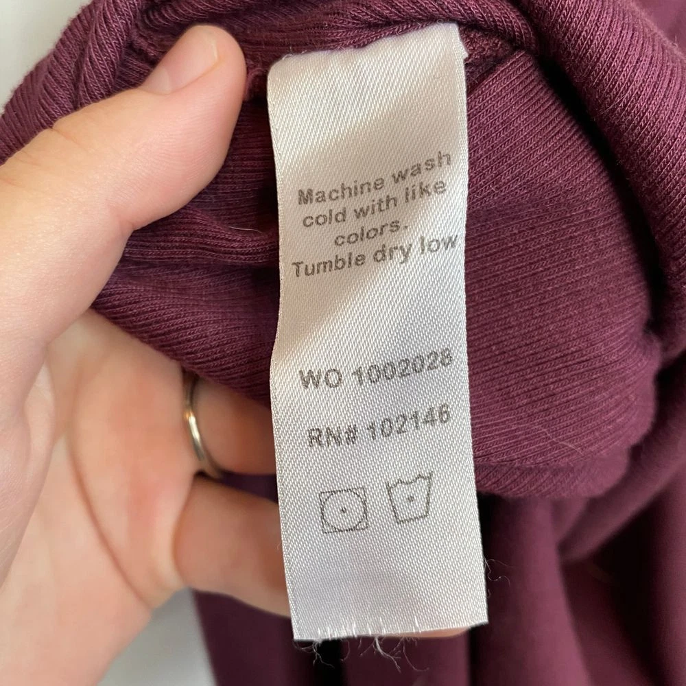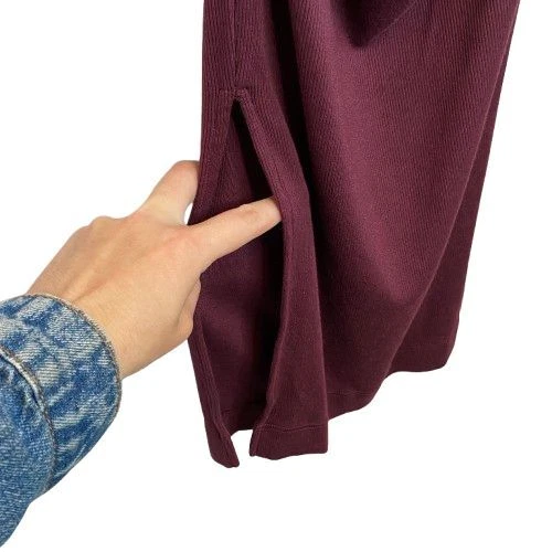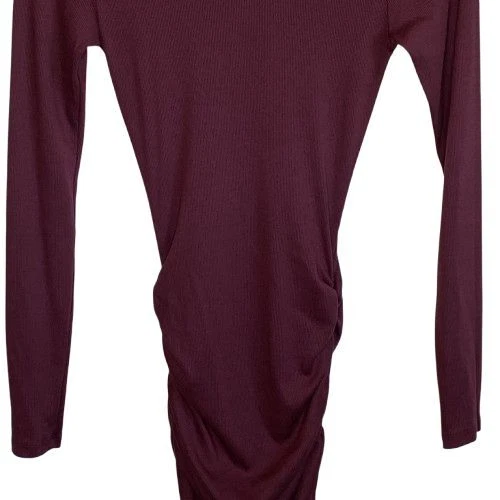 New With Tags Elevate your evening look with this stunning burgundy bodycon dress. Perfect for cocktail parties, date nights, or formal events. The ruched design flatters your curves, while the rich color exudes sophistication. Pair with statement jewelry and heels for a head-turning ensemble that's sure to impress. Pullover style Square neckline Long sleeves Fitted Ruched Midi length Left side slit Soft, comfy tee shirt feel Stretch Made in USA Original retail - $108 48% cotton, 48% modal, 4% spandex Machine washable Style profile - date night, cocktail party, evening, night out, flirty Approximate flat lay measurements: Shoulder to bottom hem length - 46" Pit to pit width - 14" Please compare measurements to something you already own to verify size and fit We are happy to answer any questions! We ship the next business day!