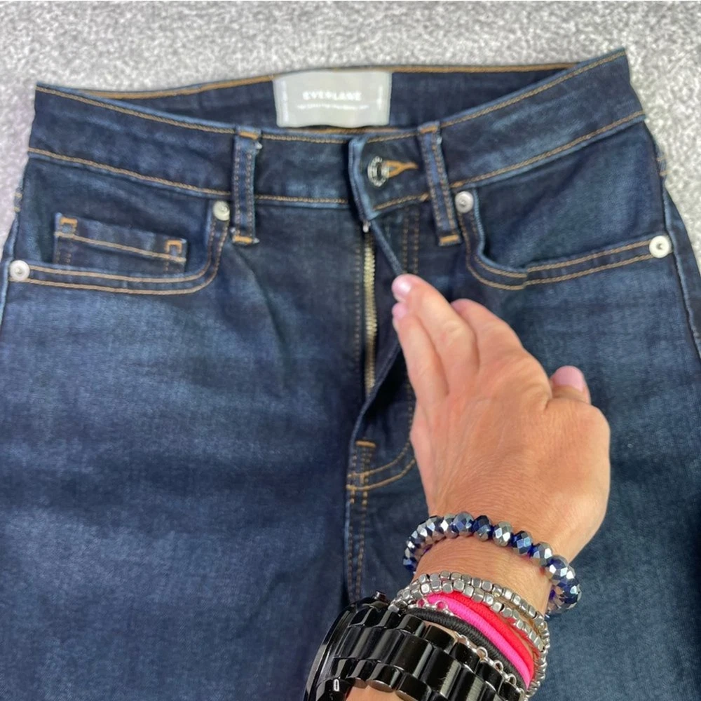 Inseam: 27 in Department: Women Pattern: Solid Vintage: No Fabric Wash: Dark Closure: Zip Type: Jeans Size Type: Regular Handmade: No Color: Blue Brand: Everlane Garment Care: Machine Washable Seller Notes: “In excellent, pre-owned condition with no flaws.” Features: Stretch, Pockets Style: Skinny Rise: Mid (8.5-10.5 in) Material: Cotton Blend Pocket Type: 5-Pocket Design Theme: Preppy, City, Classic, Modern Size: 25 Fabric Type: Denim Waist Size: 25 in Country/Region of Manufacture: Vietnam Season: Winter, Summer, Spring, Fall Accents: Logo Personalize: No Fit: Regular