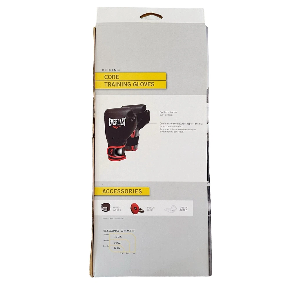 Get ready for your next boxing workout with these Everlast Core Training Boxing Gloves. The gloves come with a heavy bag and mitt workout, making them perfect for adult unisex use. The black and red color scheme adds a touch of style to your training gear. These bag gloves are made by Everlast, a trusted brand in the sporting goods industry. They weigh 14 oz., making them heavy enough to provide a comfortable and challenging workout. Whether you're a seasoned boxer or just starting out, these gloves are a great addition to your training equipment.