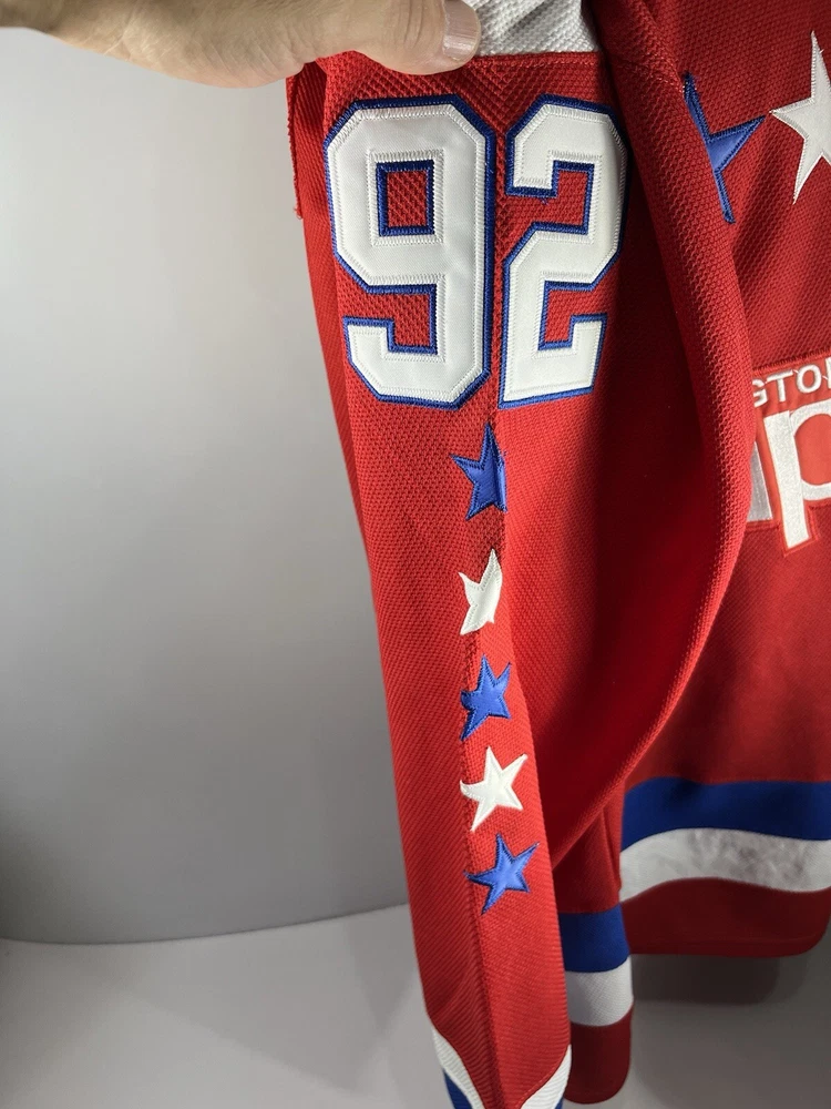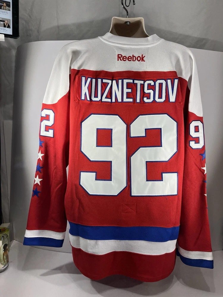 Color:RedSize:52Product:Washington Capitals JerseyPlayer:Evgeny KuznetsovSport:HockeyBrand:ReebokLeague:National Hockey League (NHL)Team:Washington Capitals