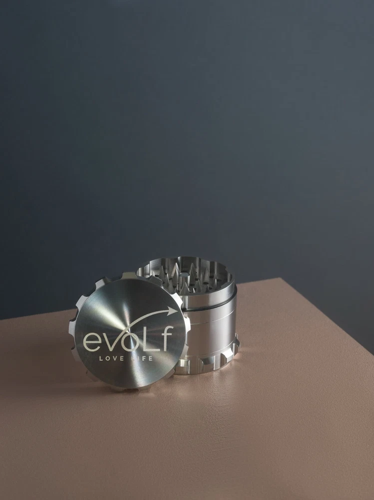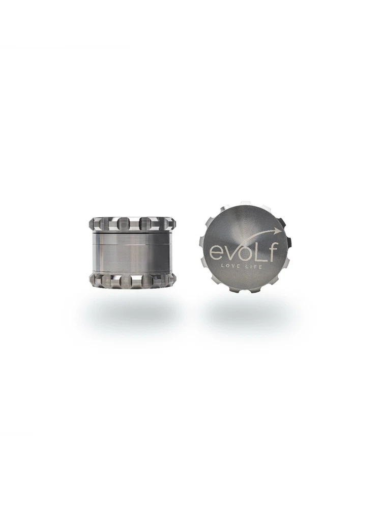 Evolf 4-piece (3 chambers) stainless steel herb grinder is a unique design and one of the best herb grinders on the market. It is heavy duty because all 4 pieces are made with stainless steel including the pyramid shaped sharp teeth. It's lid is designed with neodymium magnets which makes opening the lid very effortless and help to prevent spilling. The elegant and robust hand grips of the grinder allow easy hold and twist while grinding. It also has large grounding space. The mesh sieve filters every pollen which can be scooped up with the stainless-steel scraper. Enjoy the simplicity with herb, spice or tea. Dimension: 2.0” diameter x 1.5” height Benefits: Large grounding space Durable Easy maintenance Sharp teeth No metal shavings or rust. Material: Stainless Steel Brand: Evolf Designed in: USA Made in: China Feature: 100% stainless steel pyramid shaped teeth neodymium magnetic lid Robust hand grips