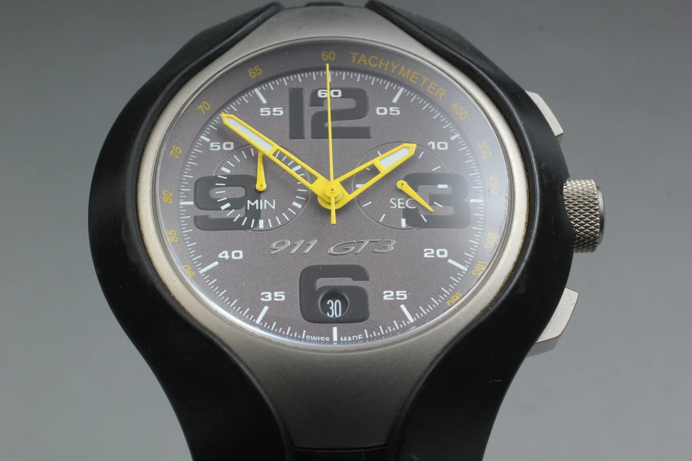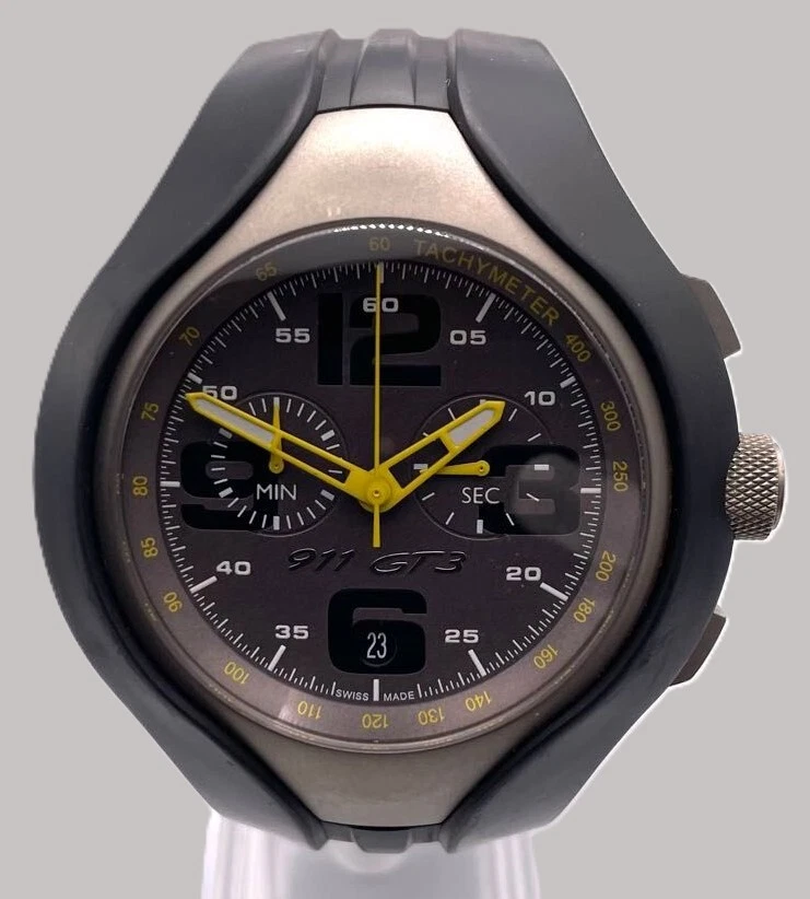 [Exc+5]Porsche Design 911GT3 Speed II Chronograph Limited Edition QZ Titan Men's #1000048302689 Description Total Condition; EXCELLENT+++++ TOP MINT Pre-owned, Almost new item MINT Pre-owned, Like new NEAR MINT Pre-owned, almost no signs of use EXCELLENT+++++ Pre-owned, minimal signs of use EXECELLENT Pre-owned, heavy signs of use VERY GOOD Poor appearance Case size is 46mm without crown. Wrist is 20cm, 7.87 inch. Appearance; Appearance is beautiful. Band is original. tiny scuffs from normal use. It shows signs of use. *Please check photos. Functional; It works properly. Bundled Items; All you can see on the picture will be included in a set of a package. Above condition is based on my own opinion. Please check the photo carefully. Please feel free to contact me for any questions! Thank you. Shipping I send a product by FedEx International Priority . I attach the tracking number. Please bid it without worrying. Shipping is available from Monday to Friday. Weekends are not available because office is closed. Storage and Packing Storage Immediately after shooting, it is placed in a closed container with desiccant and stored for 24 hours and 365 days in a temperature and humidity controlled warehouse. All products, including cameras and lenses, are stored in a temperature- and humidity-controlled warehouse 24 hours a day, 365 days a year. Packing By weight and shape of each product, I use 13 kind of cushioning materials and pursue safety and weight reduction. Returns Unconditional Return Policy Customer service and satisfaction are very important to us. I have an unconditional return policy if notified within 30 days of the receipt of the item. All returned items must be the original condition. All return requests must be made within 30 days of the receipt of the item. Please contact me first for return before you ship it back to me. The postage of the returned goods is a buyer burden. International Buyers Please Note: Import duties, taxes, and charges are not included in the item price or shipping cost. These charges are the buyer's responsibility. Please check with your country's customs office to determine what these additional costs will be prior to bidding or buying.