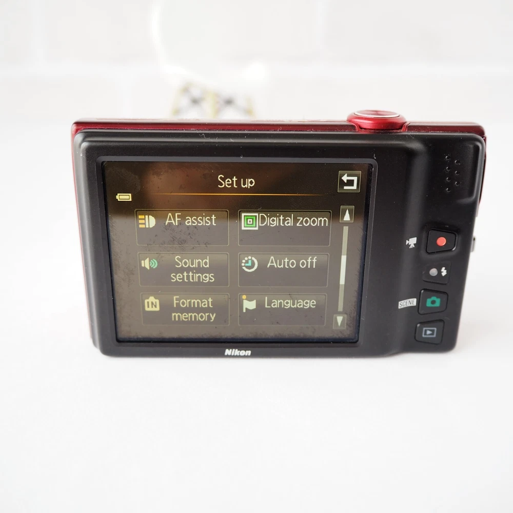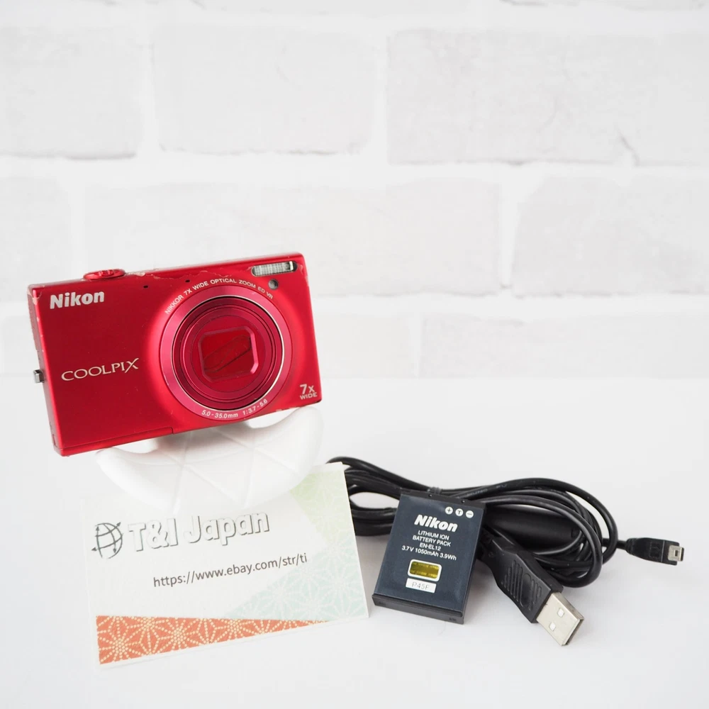 (Excellent 5+)Nikon COOLPIX S6100 Red 16.0MP 7x Optical Zoom From Japan tested Description Condition : Excellent 5+. The LCD screen has a slight yellow tint, but the images taken are not affected. Please refer to the photos for reference. This camera comes with both a battery and charging cable included, allowing you to start using it right away. Shipping Packages :Box or envelope and Bubble wrap. Packages usually leave our warehouse within 2 business days. Weekend orders will ship within the next week. International Buyers - Please Note: Import duties, taxes, and charges are not included in the item price or shipping cost. These charges are the buyer's responsibility. Please check with your country's customs office to determine what these additional costs will be prior to bidding or buying. Thank you for your understanding.