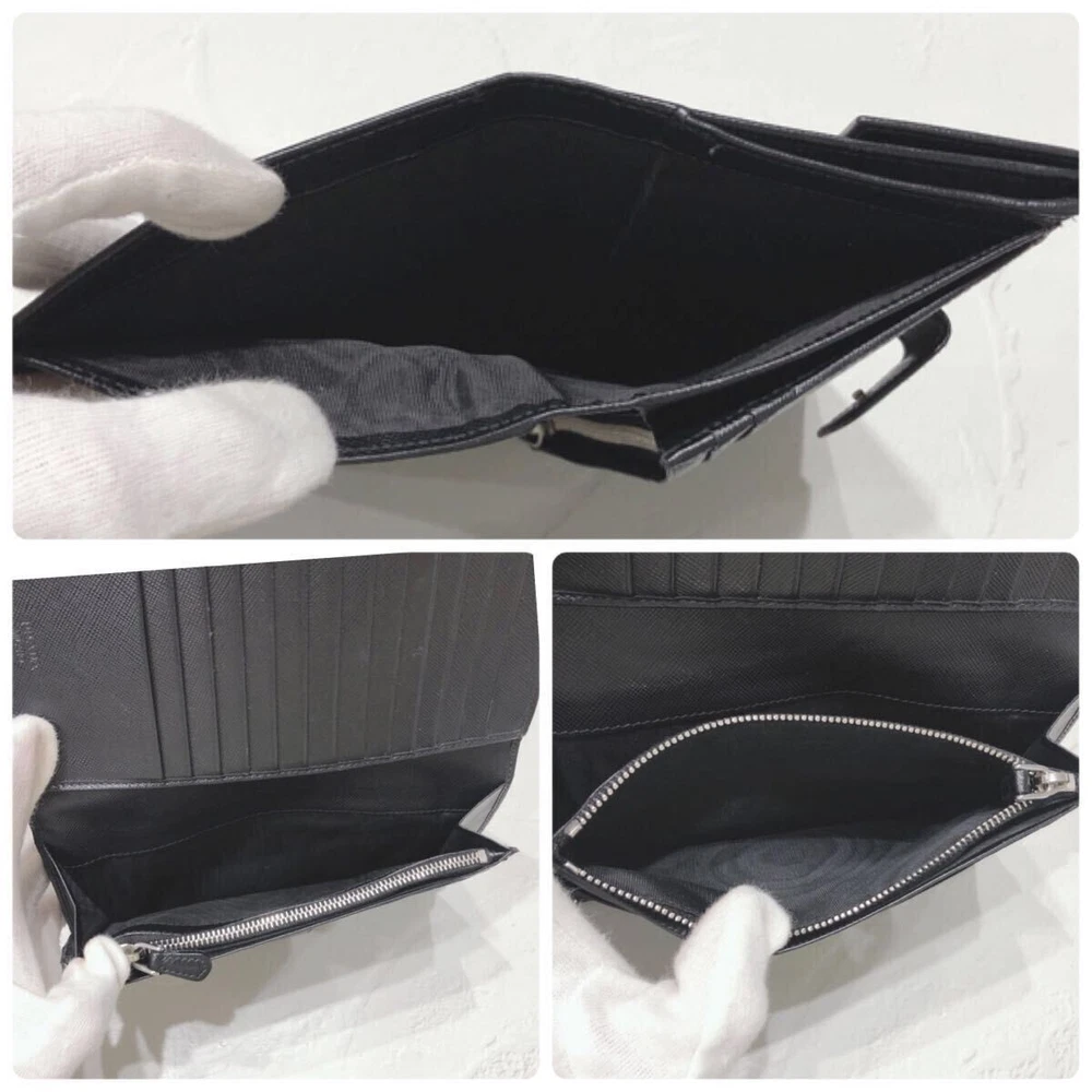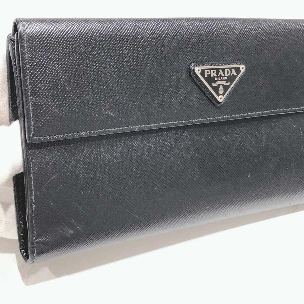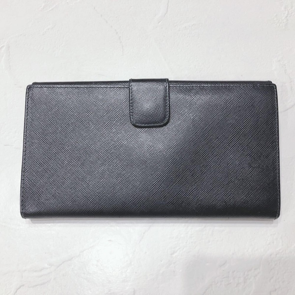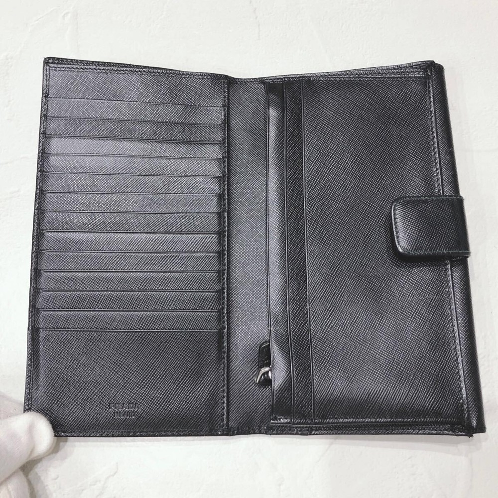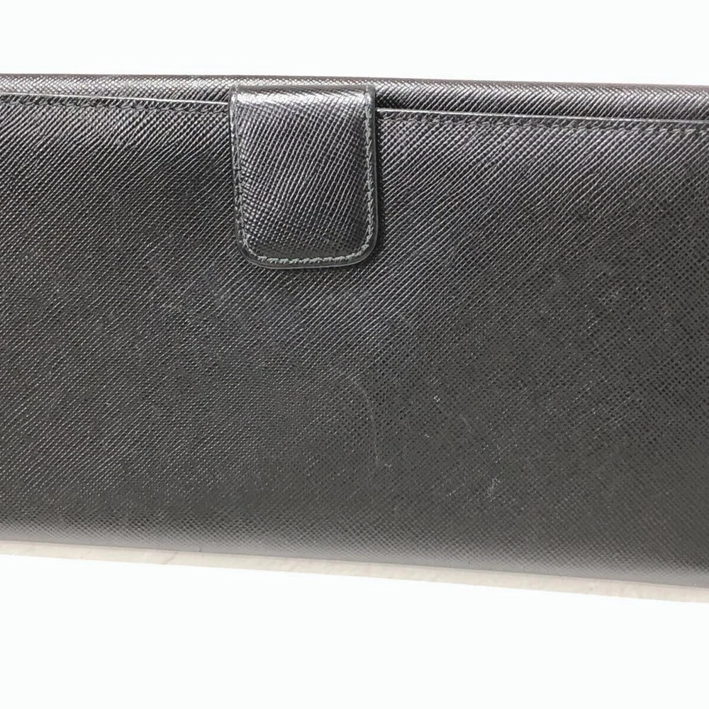 Excellent Condition PRADA Saffiano Leather Long Wallet Black Triangle Logo