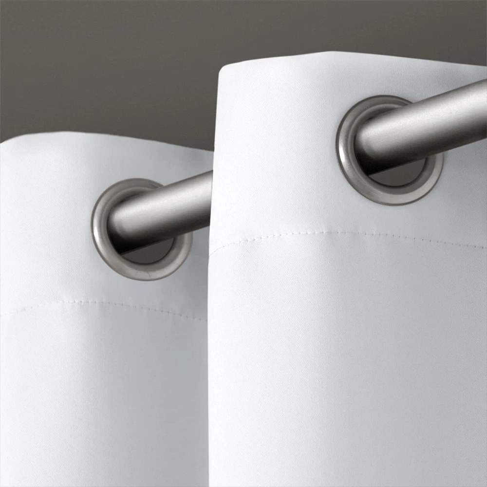 Product Description Sateen room darkening blackout grommet top curtain panels bring a rich, luxurious look and ultra soft feel to any room. These panels are interwoven with room darkening blackout insulation provided by Light Block and Thermax technology. Designed to block light and preventing harmful UV rays from reaching your floors and furniture, these panels also prevent cold or heat transfer from the outside, increasing the energy efficiency of your home. The panels provide unparalleled privacy and allows you to create darkness any time of day, making them perfect for anyone seeking to block daylight, take a nap, or keep sun glare off your TV. Sateen panels are constructed with gorgeous, matte silver grommets and can be hung on your favorite curtain rod up to 1.25" diameter, adding yet another touch to the finished look of your window decor. These window curtain panels will drape beautifully from any window that could use that perfect, finishing touch. Our curtain panels are perfect for any living room, bedroom, family room, dining room, bathroom and office. Our stylish designs will suit any window space. From the Manufacturer Amalgamated Textiles USA, Inc, is North America’s leading supplier of home textiles and ready-made drapery by delivering high fashion designs, patterns, varying textures, and colors in an “affordable luxury” quality that today’s consumers expect. From classic solids to today’s top fashion trends, you are sure to find window panels to fit any look, mood, or style to complete your home décor project. We offer an array of fabric constructions as well, including jacquards, linens, burlap, sheers, thermal/blackout, silk and faux silks, polyester and poly blends, and cotton and cotton blends. These constructions are offered in varying designs and colors including solids, prints, textures, thickness, lengths, widths, and burnouts. Like millions of customers already have, let our window coverings be the anchor of each room in your home! Sateen panels bring a rich, luxurious look and ultra soft feel to any room ROOM DARKENING OPACITY: room darkening opacity is designed for light control and privacy. GROMMET TOP FOR HANGING: These curtain panels feature eight (8) matte silver grommets per curtain panel and fits a curtain rod up to 1.25" in diameter. Each panel is sewn with a 3.5" heading, 1" side hem, and 3" bottom hem. SET OF CURTAIN PANELS: Includes (2) curtain panels, each measuring 52"W x 96"L. For proper look and fullness, the curtain panels should measure 2-3 times the width of your window/opening.