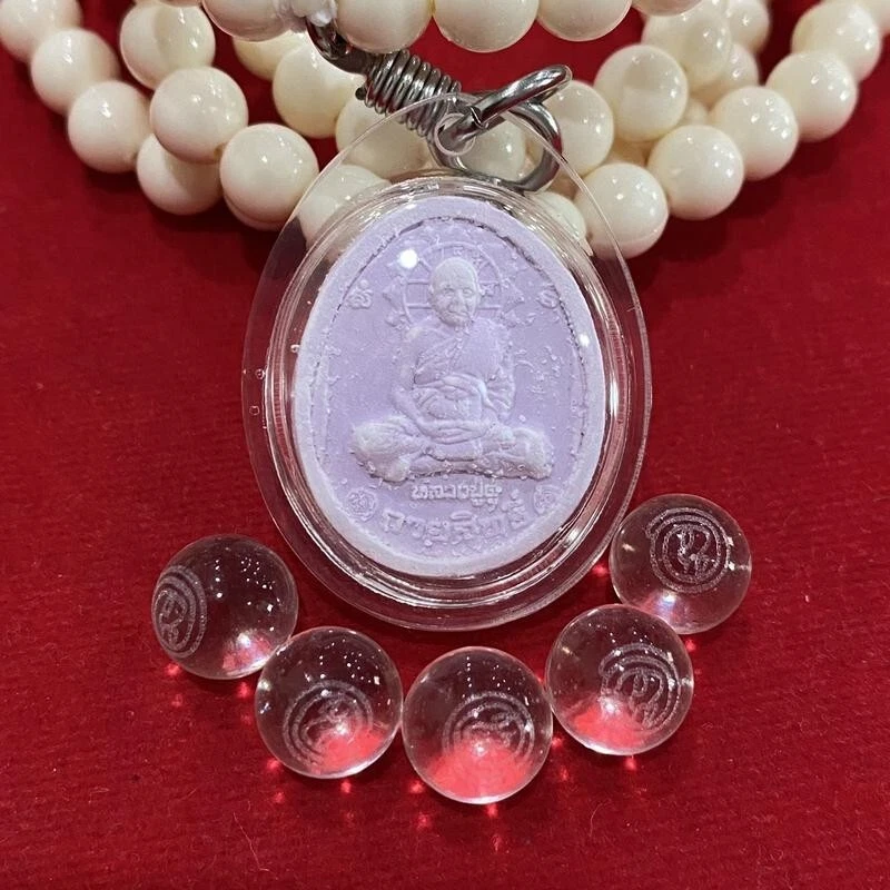 Exclusive Luang Pu Doo Pink Powder Amulet Necklace Set with Laser Crystal Balls The Pink Sacred Powder Amulet Set with White Rosary and Laser-Coded Crystal Balls This exclusive set features the Sacred Pink Powder Amulet , also known as Luang Pu Du Phim Kai Sit (Sacred Form) , crafted and blessed by Luang Ta Ma of Wat Tham Muang Na , Chiang Mai Province. Each amulet is uniquely handcrafted and infused with sacred relics that appeared during the blessing ceremony, enhancing its spiritual power. Included in the set is a white rosary , perfect for chanting mantras or daily meditation, and laser-coded crystal balls , symbolizing clarity and positive energy. The amulet is securely encased in a durable, waterproof plastic frame, ensuring long-lasting protection and wearability. This sacred amulet is believed to: Bring protection , wealth , and good luck to the wearer. Assist in warding off diseases and promoting well-being. Be used for creating holy water by soaking the amulet, which can then be used for bathing, drinking, or sprinkling in your home for blessings and purification. Whether for personal use or as a meaningful gift, this set offers a perfect blend of spirituality, craftsmanship, and purpose. What's Included in the Set: Pink Sacred Powder Amulet (Luang Pu Du Phim Kasiyathit) – Crafted by Luang Ta Maa. White Rosary – Featuring approximately 108 beads, ideal for chanting mantras. Laser-Coded Crystal Balls – 5 pieces, each marked with sacred symbols to enhance spiritual energy. Authentic Amulet – 100% original, directly from Wat Tham Muang Na Temple, located in Mueang Na Subdistrict, Chiang Dao District, Chiang Mai Province, Thailand. *********************** Our Policy Payment Payment must be made through eBay within 2 days of purchase. Shipping Economy shipping (estimated 7–20 business days). We ship worldwide from Thailand or Southeast Asia. A tracking number will be provided via eBay messages once payment is completed, or the tracking number will be updated in your order. Returns and Refunds We offer a 100% money-back guarantee within 30 days if there are any issues with the product. Shipping fees are non-refundable, and the buyer is responsible for the return shipping costs. Contact Us Please contact us only through eBay messages. Note for International Buyers: Import duties, taxes, and fees are not included in the item price or shipping cost. These charges are the buyer’s responsibility. Please check with your country’s customs office to determine what these additional costs will be before bidding or purchasing