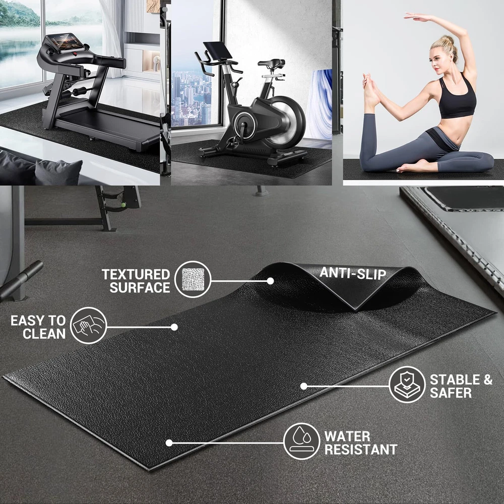 Protection Floor Mats : Protects hard floors from damaged from treadmills, elliptical machines, stationary bikes and other heavy exercise equipment, No stain, No scratch. Protect Exercise Equipment : Prolongs the life of your equipment, Prevent floor and carpet dust from entering belts and mechanical parts. High Density & Non-slip Surface: Noise reducing , absorbs vibration, noise and impact caused when exercising on cardio equipment. Lightweight, water resistant, sweat resistant, easy to clean. Size : 120 x 60 x 0.6cm. Perfect for indoor cycles, steppers, exercise bikes, step-aerobics, and just general exercise stretching. Excellent service & Our Protective Exercise Mat is made of High Density NBR & PVC material,Non-slip Surface, prevent the fitness equipments from moving round