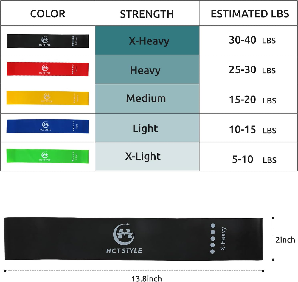 Store New Arrivals Add to Favorite View Feedback Contact Exercise Bands Resistance Bands for Working Out Set 5 for Yoga Pilates,Elastic Workout Bands Fitness Bands Resistance Natural Latex with Exercise Instructions E Carry Bag Description Tension Level 10 pound Style Yoga Pilates Item Dimensions LxWxH 6.3 x 1.1 inches Color MULTICOLORE Number of Resistance Levels 5 Material Natural Rubber Warranty Description 2 Package Weight 0.13 Kilograms Item Weight 130 Grams Suggested Users unisex-adult Number of Items 5 Model Name FITNESS BANDE Recommended Uses For Product Workout Included Components 5 resistance bands of different sizes, Carry Bag, Exercise Instructions Sport Yoga, Exercise and Fitness, Pilates Special Feature Non-slip Product Dimensions 13.8"L x 2"W Item Package Dimensions L x W x H 6.65 x 3.62 x 1.26 inches Resistance Band Set: 5 Elastic Band for Exercise Levels From X-Light To X-Heavy. Ideal For Workout, Stretching, Physical Therapy, And Added Intensity. Perfect For All Fitness Levels: Suitable For Beginners And Pros, With Stretch Bands for Exercise for Physical Therapy Levels To Match Your Work Out Goals. Premium & Durable: Crafted From High-quality Latex For Lasting Elasticity And Performance, These Booty Bands For Working Out Glutes Maintain Their Strength Through Extensive Use. Portable & User-Friendly: Includes A Compact Carry Bag And Workout Guide, Making It Easy To Exercise Anywhere—at Home, The Gym, Or On The Go. Perfect For Home Workouts, Therapy, And Recovery. Multi-Purpose & Effective: Ideal For Strength Training, Stretching, Rehab, And Full-body Toning. Perfect For Targeting Multiple Muscle Groups And Boosting Your Fitness Journey. Product Description "HCT STYLE Fitness Resistance Bands set : Multifunctional Fitness Elastic Band to Make Your Exercise More Efficient" "5 Colorful Fitness Elastic Bands to Meet Every Workout Level!" Product Description: The HCT STYLE Fitness Resistance Band Set gives you endless possibilities to get in shape and improve strength and flexibility. Whether exercising at home or at the gym, our resistance band set is your ideal companion. 1.Black Resistance Band - Suitable for high-intensity workouts. (XHEAVY) 30-40lbs 2.Red Resistance Band - Suitable for medium-intensity workouts. (HEAVY) 20-30 lbs 3.Yellow Resistance Band - Suitable for beginners and light workouts. (MEDIUM) 15-20lbs 4.Blue Resistance Band - Suitable for gentle stretching and rehabilitation exercises. (LIGHT) 10-15lbs 5.Green Resistance Band - Suitable for light stretching and rehabilitation exercises. (X-LIGHT) 5-10lbs "Differences Between Natural Latex and TPE in Fitness Resistance Bands" "Quality is always our first choice!" 1.Material Composition: Natural Latex: Our fitness resistance bands are made from pure natural latex, a natural material extracted from the sap of rubber trees. TPE:is a synthetic material produced from a blend of plastic and rubber 2.Naturalness and Allergies: Natural Latex: Natural latex is a purely natural material and carries a lower risk of allergic reactions compared to TPE. Others can trigger allergic reactions in some individuals as it is synthetic. 3.Elasticity and Durability: Natural Latex: Resistance bands made from natural latex offer excellent elasticity and durability, maintaining their tension and shape even with frequent use. Others bands are also elastic but may lose some elasticity over time and could be less durable compared to natural latex bands. 4.Environmental Friendliness: Natural Latex: Natural latex is a renewable resource, making it more Environmental Friendliness. TPE is produced from plastics and is less Environmental Friendliness. 5.Price: Natural Latex: Natural latex bands tend to be somewhat more expensive due to the quality of the material and manufacturing processes. Others bands are often more affordable as the material is less costly to produce. "Multifunctional Elastic Band Set - Elevate Your Workout Experience!" "Training Without Limits - Complete Set of Elastic Bands" "Optimize your training with this versatile set of elastic bands, a must-have for your physical fitness. The four images showcase different training modes: stretching, resistance training, rehabilitation exercises—all in one set! Made from natural rubber latex, it ensures exceptional elasticity and durability. Suitable for all fitness levels, it is the ideal choice for fitness enthusiasts and professional athletes. Enhance your training experience." ABOUT US We offer the best prices around on high quality products. Our E-store includes media such as books, movies, music and games while offering electronics, toys, sporting apparel, clothing, tools, general home, garden items and more. SHIPPING We are always working hard to ensure your package arrives as soon as possible. Please understand that some factors like weather, high postal traffic, and the performance of shipping companies are outside of our control. We offer free shipping to the lower 48 states and ship within 2 business days of payment, usually sooner. We do not accept P.O. Boxes. Please provide a physical address. RETURNS We offer a 30-Day Return Policy on items which you are not completely satisfied with. You have the option for a full-refund or an exchange of the item. No returns are available on items shipped outside of the USA. PAYMENT We accept PayPal. CONTACT US This page content is yet to come Please ad us to your favorite seller and visit again later Thank You CUSTOMER SATISFACTION We try our very best to make sure every customer is completely satisfied. If there's a problem, message us! We're happy to help.