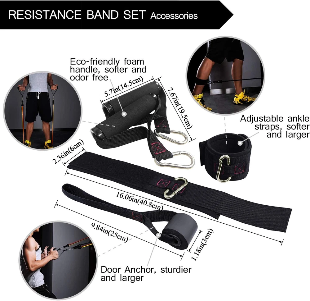 Store New Arrivals Add to Favorite View Feedback Contact Fast deliveries to the customer's home Quality customer service John Make the customers happy! Exercise Resistance Bands with Handles - 5 Fitness Workout Bands Stackable up to 110/150/200/250/300 Lbs, Training Tubes with Large Handles, Ankle Straps, Door Anchor, Carry Bag Description Burn fat and build muscle: Resistant band training are extremely effective at burning fat and increase muscle strength, and also help you increase coordination, boost stamina, flexibility, range of motion, exercise different muscle groups, such as shoulder, arm, leg, butt, booty, and etc. Perfect for all whether beginners or expert, boys or girls, men, women or children. Versatility, make fitness simple: While free weights(barbells, dumbbells, kettlebells) have long been a fixture in gyms and weight machines are stable and easy to use, neither has the versatility of the resistance bands. 5 bands can be used alone or stacked in any combination of intensity from 10lbs to 110lbs. With attachable handles, ankle straps, door anchor, you can choose different training methods for building strength. Lightweight and portable, use anytime and anywhere: The resistance bands are ultra lightweight and easy to carry. You can easily pack them in your suitcase or in you car, so you can excersize in the workplace or in your hotel room. In fact, they will become your usual equipment. Privacy exercise in your home, hotel, workplace. Premium materials to ensure maximum life, health and safety during use: The anti-snap bands are made of natural latex that is stackable, non-irritant and odor free, it's an excellent choice for your health and exercise. With sweatproof and skidproof handles, strong fabric and steel D buckles to ensure maximum life and safety during use. We think that you find these are the best resistance bands on the market. Get your complete resistance bands set now: You’ll feel 100% satisfaction from the moment you received the exercise bands set. They come with a lightweight carrying bag, a sturdy door anchor, a pair of larger straps and handles for home gym exercise, door exercise, weightlifting, stretch exercise,leg exercise, etc. We are quite sure that you will be super-impressed with the durability, portability, versatility and high quality of our resistance exercise bands. Advantages of Resistance Bands The Smallest Personal Gym Resistance bands are effective tool in your strength training routine. They offer a great alternative to free weights and traditional workout machines, providing an excellent option for your home gym and traveling needs. Resistance bands can help you achieve any number of training exercises by simply changing your body position in order to change the tension on your muscles. This makes them ideal for any type of strength training routines. Bands take up little space, are easy to transport, and can be used by anyone from beginners to fitness experts. Tension Level 10 LBS - 110 LBS Style Resistance Bands Number of Items 12 Warranty Description You’ll feel 100% satisfaction from the moment you received the exercise bands set. Package Weight 0.87 Kilograms Material Natural Rubber Outer Material Latex Suggested Users Boy & Girl & Men & Women & Kids Skill Level Advanced Beginner Intermediate Professional Expert Hand Orientation Left & Right Item Package Dimensions L x W x H 7.99 x 7.99 x 3.86 inches Included Components 5 x Anti-snap latex bands / 2 x Cushioned Handles / 2 x Ankle straps / 1 x Door Anchor / 1 x Waterproof Carrying Bag / 1 x Instruction Item Thickness 1 Inches Model Name TFL-Resbands Number of Resistance Levels 5 Item Weight 1.7 Pounds Special Feature The Best and Strongest Resistance Band Set Part Number TFL-NewResBands-000 Sport Baseball Softball Home Gym Yoga Training Exercise Workout Item Dimensions LxWxH 39.37 x 0.39 x 39370.1 inches Color 110 LBS Handle Material Cushioned handles (Sweatproof and Skidproof) Recommended Uses For Product Workout Line Weight Yellow band = 10 lbs / Blue band = 15 lbs / Green band = 20 lbs / Black band = 25 lbs / Red band = 40 lbs ABOUT US We offer the best prices around on high quality products. Our E-store includes media such as books, movies, music and games while offering electronics, toys, sporting apparel, clothing, tools, general home, garden items and more. SHIPPING We are always working hard to ensure your package arrives as soon as possible. Please understand that some factors like weather, high postal traffic, and the performance of shipping companies are outside of our control. We offer free shipping to the lower 48 states and ship within 2 business days of payment, usually sooner. We do not accept P.O. Boxes. Please provide a physical address. For shipping outside of the continental USA, we only use eBay's Global Shipping Program. The item is shipped to KY and then sent to the rest of the world. International customers are responsible for all duties and taxes. Continue to 'check out' to calculate costs for shipping the item to your country. Messages regarding eBay's Global Shipping Program MUST be directed at eBay EXCLUSIVELY. RETURNS We offer a 30-Day Return Policy on items in which you are not completely satisfied with. You have the option of a full-refund or an exchange of the item. No returns are available on items shipped outside of the USA PAYMENT We accept PayPal. CONTACT US This page content is yet to come Please ad us to your favorite seller and visit again later Thank You CUSTOMER SATISFACTION We try our very best to make sure every customer is completely satisfied. If there's a problem, message us! We're happy to help. WE ACCEPT