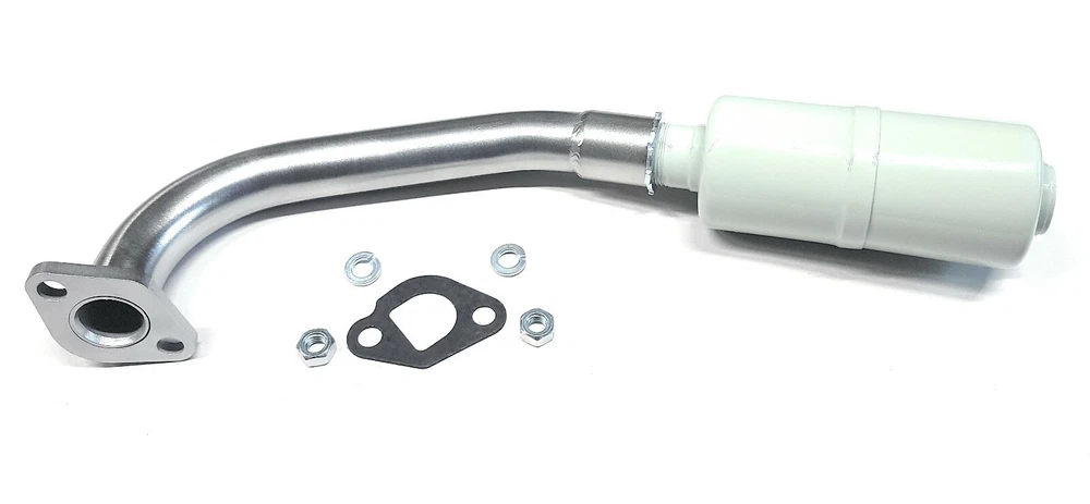 You must know this before you make your purchase! - There is no painting in this exhaust, Rust can come out over time, "solution" you applies high heat paint. - This exhaust will change color due to the high heat generated by the engine. Please look at all the pictures to know if this is what you want. Type of material: mild steel, Uncoated Steel. What includes? - Exhaust pipe - Muffler - 2 Lock washer - 2 nut. - Exhaust Gasket. - lock washer for muffler Only for: Coleman RB200 mini bike, Mega Moto 212cc Pro, Monster Moto Classic 212cc, Realtree RT200 196cc Camo Gas Powered Ride-On Mini Bike, Tao Motor 200 DB200. Exhaust pipe Made in U.S.A.