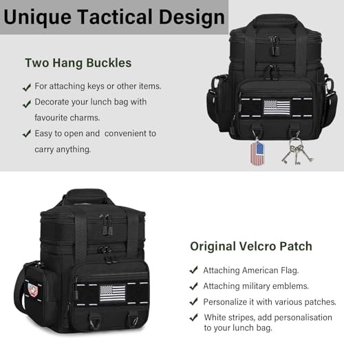 Capacity: 16 Liters Item Form: Bag Brand: Does Not Apply Material: Water resistant Oxford Item Weight: 1.9 pounds Country of Origin: China MPN: Does Not Apply Closure Type: Zipper Pattern: Solid Item Length: 8.4 Unit Count: 1 Count Item Height: 12.9 Recommended Uses For Product: Travell, Beach, Picnic, Work, Trips, Camping Product Dimensions: 8.4 x 13.3 x 12.9 inches EAN: Does Not Apply UPC: Does Not Apply Style: Tactical Included Components: Adjustable Shoulder Strap, Expandable Lunch Box, American Flag Color: A-Black Item Width: 13.3 gtin13: Does Not Apply Manufacture Year: 2024 Number of Compartments: 2 Date First Available: May 25, 2024 Size: 16L Special Feature: Unique Tactical Design, American Flag Patch, Dual Compartment, 2 Department: Unisex-Adult Shape: Rectangular Customer Reviews: 4.7 out of 5 stars Type: Does Not Apply Product Care Instructions: Hand Wash Only Item model number: CB04 Age Range Description: Adult Number of Items: 1 Theme: Military Manufacturer: Does Not Apply