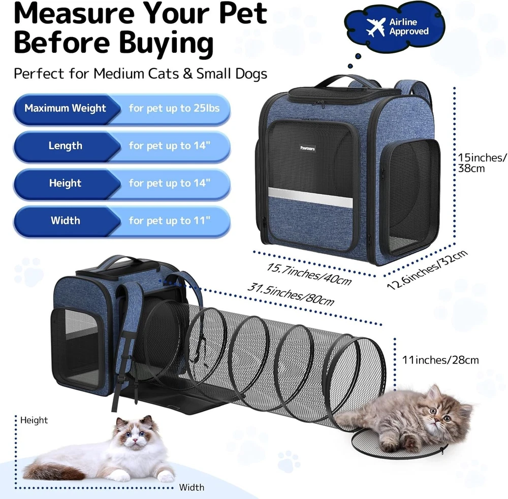 My cat loves the extra space in the expandable tunnel! It's super comfortable to carry, even on long walks, and the mesh keeps him cool and happy. A fantastic, well-designed carrier.