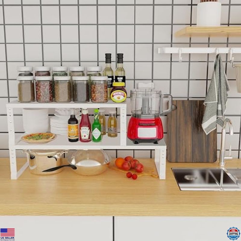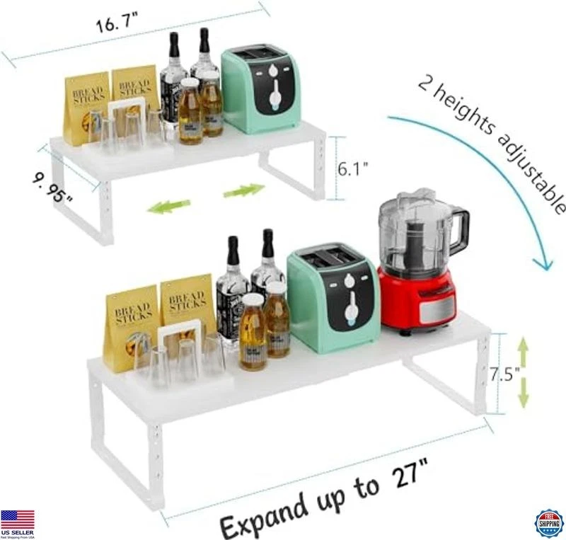Expandable Cabinet Shelf Organizer Storage Spice Rack Shelves for Kitchen Stackable Adjustable Pantry Cupboard Bathroom Countertop Desktop(2Packs/White/Large) Description Maximize your space with the JOJOCROSS Expandable Cabinet Organizer Shelves, designed to keep your kitchen, bathroom, and office tidy and accessible. With its adjustable height and expandable length, this sturdy metal rack can hold up to 100 lbs of household items, making it perfect for spices, books, or cosmetics. Easy to install and clean, it offers a versatile solution for organizing your essentials while enhancing the aesthetic of any room. Transform clutter into order with this functional and stylish storage solution! Product reference: B0CJRBWWVD. Features ⭐【Expandable,Stackable,Adjustable】The shelves has mutil functions. The length can be extended and height can be adjusted,you can use one set only or stack two or three shelves together according to your desire to create more storage space. The measures are 10.1"D x 16.6~26.5"W x 6.1"/7.5"H. ⭐【Functional】This Cabinet Shelf can be used in many places of your house, not only good for Kitchen,Cabinet,Pantry,Cupboards, but also for bathroom,Laundry room ect. Perfect shelf to keep everything organized. Utilize the cabinet shelf organizers to maximize your storage capacity. Say Goodbye to the mess! ⭐【Sturdy Construction】The Shelf organizer made of sturdy metal with the thicken powder coated, features strong rustproof, non-slip to avoid moving or scratching,Up to 100 lbs of household items can be held. This kitchen storage rack is made to provide perfect solutions for your home. ⭐【Easy installation and clean】Comes with all necessary accessories with clear instructions. Easy to Assemble and takes just minutes. Easy to Clean. ⭐【Satisfaction Guarantee】We are always providing high quanlity products,Don't hesitate to contact us if you are not satisfied。 Using our products to start enjoying a tidy life. Shipping Free & Fast Shipping: We offer free shipping to most of the USA with a normal delivery time of 3-7 days. However, due to the current situation, additional delivery time (up to 3 weeks) may be required for some items. Alternative Carriers: We may use alternative carriers (e.g., USPS, FedEx, UPS) to ensure your package arrives safely and on time. Due to the use of multiple carriers, we are unable to provide a tracking number automatically. Handling Time: Orders are processed and shipped within 1-2 business days of receiving cleared payment. Shipping Restrictions: Shipping to Alaska, Hawaii, Puerto Rico, Guam, and other US territories may incur shipping charges or delivery restrictions. Please contact us before ordering, or your order can be refunded/cancelled. State Restrictions: Certain items may not be shipped to California due to state regulations. Contact for Tracking Updates: If you require tracking updates or have any concerns about the delivery of your order, please feel free to contact us, and we will be happy to assist you. Return Policy 30-Day Hassle-Free Returns: If you are not completely satisfied with your purchase, you can return the item for free within 30 days of receiving it for a full refund or exchange. Easy Return Process: Contact us, and we will provide you with a prepaid return shipping label and detailed instructions. No Restocking Fee: There are no restocking fees for returns. However, the buyer is responsible for return shipping costs if the return is not due to a seller's error. Refund Processing: Refunds will be processed within 1 business day of receiving the returned item in its original condition.