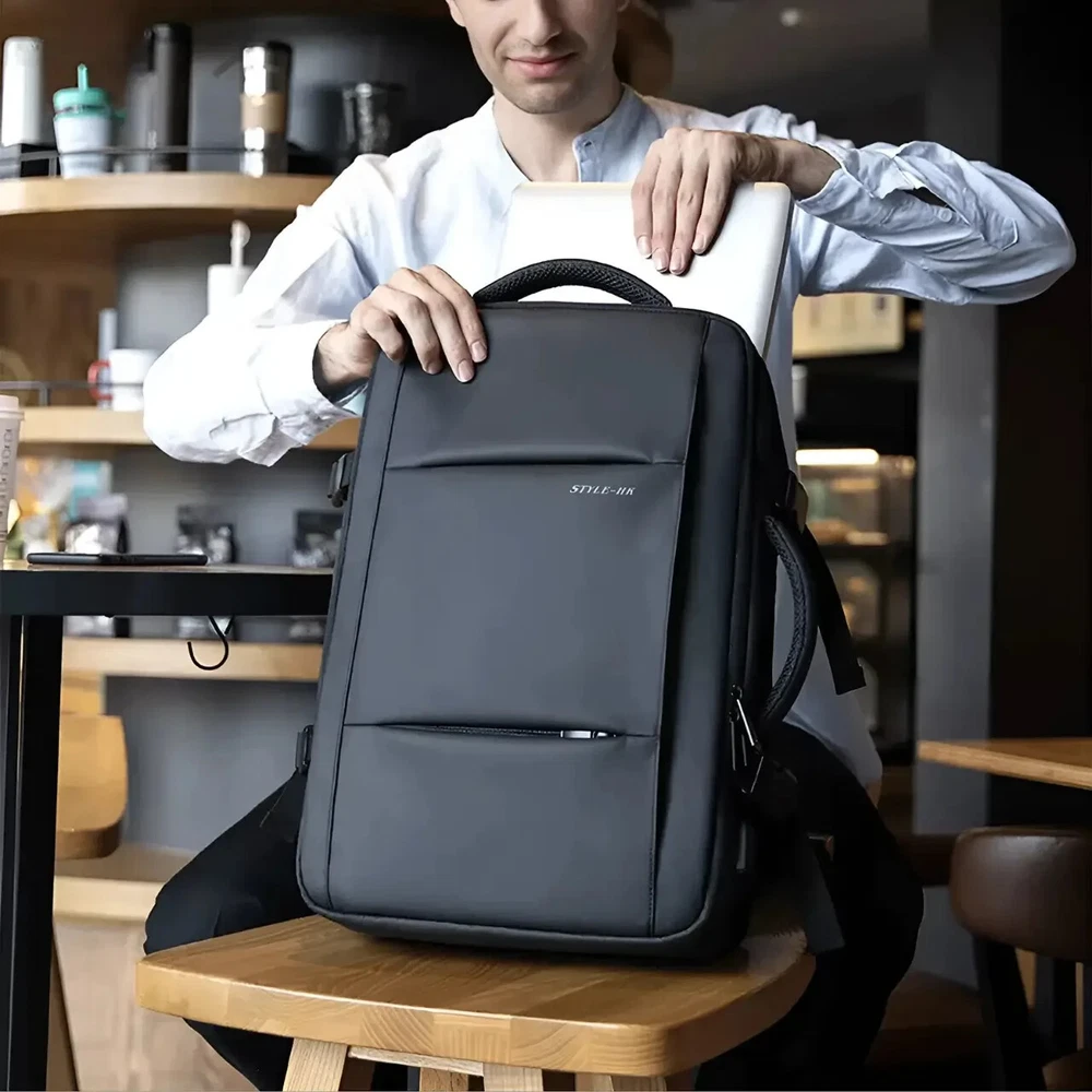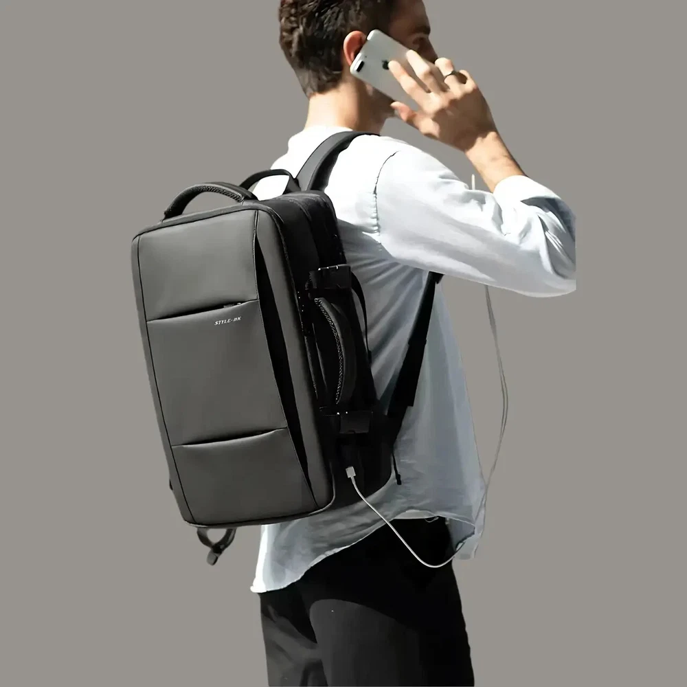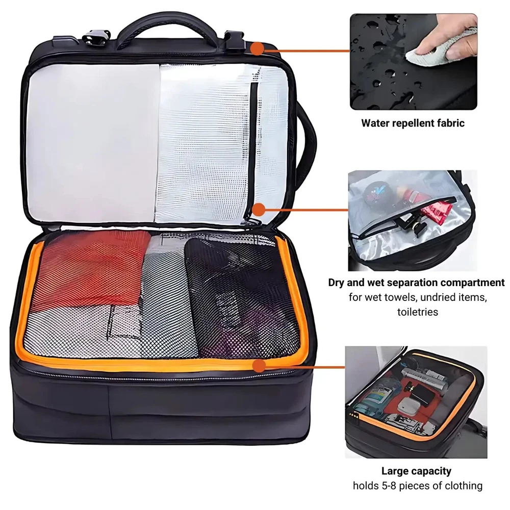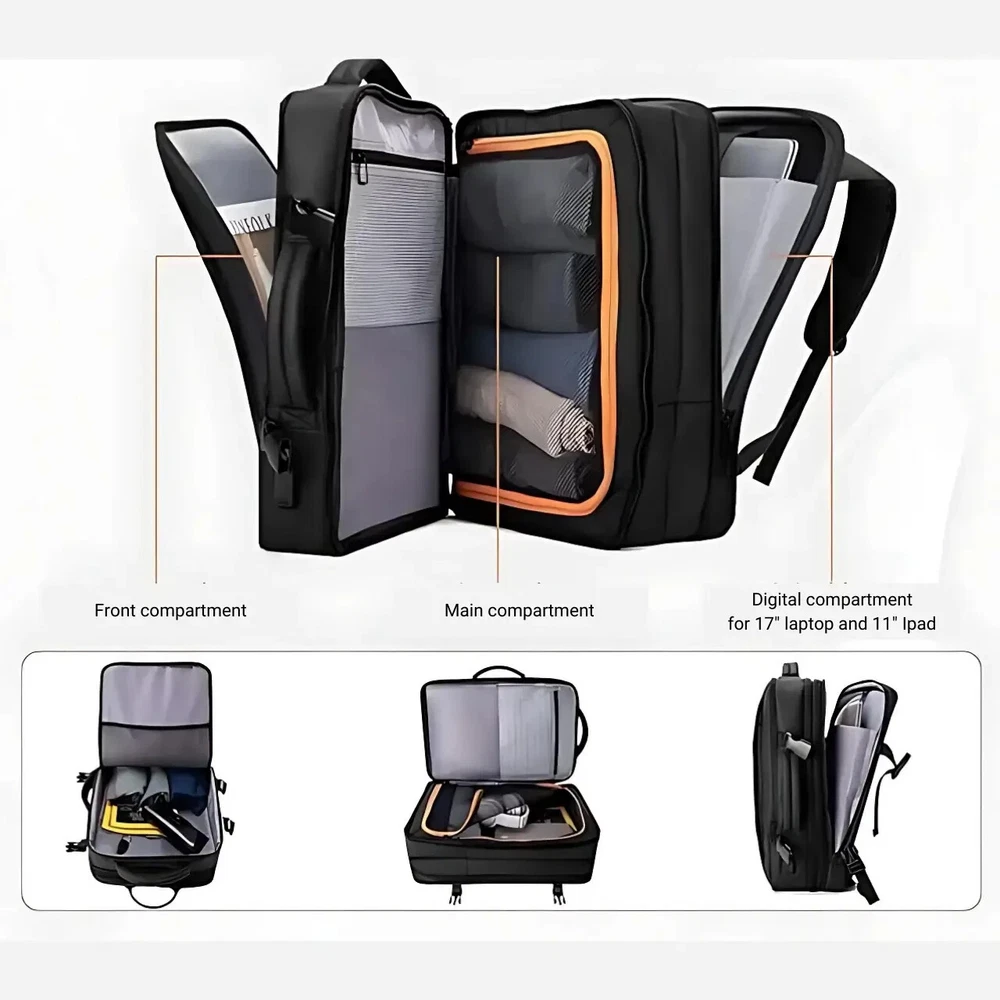 The Expandable Carry-On Backpack: Versatile Design for Every Journey ✔️ Expandable Capacity: Adjusts from 22L to 35L to suit your travel needs. ✔️ Cabin-Ready: Perfectly sized to fit in the overhead compartment. ✔️ Dedicated Laptop & Tablet Layer: Easy access without rummaging through the main compartment. ✔️ USB Charging Port: Stay connected on the go. ✔️ Luggage Sleeve: Effortlessly secure it to your suitcase. ✔️ Water-Repellent Fabric: Keeps your essentials safe in unexpected weather. ✔️ Internal Wet & Dry Compartment: Organized packing for every trip. Ideal for business trips, weekend getaways, or staying within Ryanair’s cabin baggage limits, this backpack combines functionality with a sleek design. Key Features: Expandable Capacity: Adjustable from 22L to 35L, making it versatile for both short and extended trips. Cabin-Ready Design: Perfectly fits Ryanair and most airline cabin luggage specifications. Smart Organization: Dedicated padded compartments for a laptop (up to 15.6”) and tablet, plus multiple internal pockets for easy access to essentials. USB Charging Port: Built-in USB port ensures your devices stay powered during your travels. Water-Repellent Fabric: Premium material to protect your belongings from light rain and accidental spills. Wet & Dry Compartments: Separate spaces to keep wet items from mixing with your dry essentials. Ergonomic Comfort: Lightweight design with adjustable, padded shoulder straps. Luggage Sleeve: Slides onto your suitcase handle for convenient travel. Top and Side Grab Handles: Handy for quick carrying. Specifications: Dimensions (Not Expanded): 44cm x 14cm x 31cm (17.3" x 5.5" x 12.2") Dimensions (Expanded): 44cm x 24cm x 31cm (17.3" x 9.4" x 12.2") Capacity: 23L to 39L Main Material: Durable Oxford fabric Lining Material: High-quality polyester