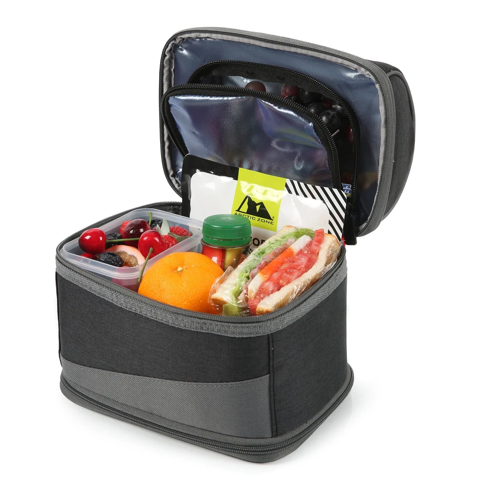 The Expandable Secret Bucket features two large compartments separated by a transparent interior divider and includes a high performance ice pack that enhances cold retention. If you want to carry taller items, just unzip the divider for more vertical space. The bucket also has an expandable bottom compartment for those days when you want to bring even more food. The interior of the bucket has high density thermal insulation to keep food and drinks cool and fresh, a leak proof bottom compartment and Ultra Safe easy clean lining with Microban to help protect against bacterial odors and stains. 2 Compartments separate drinks from food, hard from soft High density thermal insulation keeps contents cold Zippered, transparent compartment divider unzips to provide space for taller items Expandable bottom compartment for those days when you want to bring more food Leak proof bottom compartment means no more worries about food or liquids seeping out from the bottom of the pack Ultra Safe easy clean lining with Microban to help protect against bacterial odors and stains and make the lining easier to clean Carry handle High performance ice pack enhances cold retention Reusable lunch box