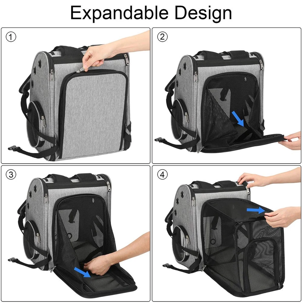 Expandable Pet Carrier Backpack for Cats, Dogs and Small Animals, Portable Pet Travel Carrier, Super Ventilated Design, Airline Approved, Ideal for Traveling/Hiking/Camping Product Details Color: Grey Brand: COVONO MPN: EPC002 UPC: 191762425757 EAN: 0191762425757 Color: Grey Brand: COVONO Product Dimensions: 13.4"L x 10.2"W x 16.5"H Material: Acrylic Special Feature: Durable, Easy to Use, Adjustable Product Dimensions : 13.4 x 10.2 x 16.5 inches; 3.3 Pounds Item model number : EPC002 Date First Available : November 21, 2020 Manufacturer : COVONO Best Sellers Rank: #22,272 in Pet Supplies (See Top 100 in Pet Supplies) #49 in Dog Carrier Backpacks #49 in Dog Carrier Backpacks Customer Reviews: 4.8 4.8 out of 5 stars 2,646 ratings Item Weight: 3.29 pounds Manufacturer: COVONO Item model number: EPC002 Date First Available: November 21, 2020 Item Package Dimensions L x W x H: 16 x 12 x 2.1 inches Item Dimensions LxWxH: 13.4 x 10.2 x 16.5 inches Brand Name: COVONO Target Audience Keyword: dogs Color: Grey Size: 13.4"L x 10.2"W x 16.5"H Material: Acrylic Number of Items: 1 REAR EXPANDABLE DESIGN: With the rear expandable design, the space inside the backpack can be doubled. It not only increases air circulation, but also allows your pet to stay in it more comfortably and move around more freely BETTER VENTILATION&VISIBILITY: The most important improvement of this backpack is to ensure excellent ventilation and visibility at the same time. 1 large transparent acrylic window, 3 breathable mesh windows and 9 venting holes, provide plenty of air and excellent view for your pet STURDY&SAFE STRUCTURE: Equipped with a firmly reinforced structure, to prevent the backpack from collapsing on your pet while traveling. When you open the top mesh windows to let your pet stick his head out, the safety rope inside can prevent your dog from running away COMFORTABLE TO WEAR: Comes with both waist and chest buckles, to give you extra support and maintain the stability of the backpack, prevents pets from slipping. The shoulder straps are equipped with extra thick padding for more comfort during long trips MEASURE YOUR PET BEFORE PURCHASEING: Its external size is 13.4"L x 10.2"W x 16.5"H while the internal size is 13.0"L x 9.3"W x 14.8"H and can be 13.0"L x 21.5"Wx 14.8"H after fully expanded. Recommended max load is 18 lbs. Do not select the backpack size based on weight only, please reference your pet's length(front feet to base of tail) and height(floor to top of head) in selecting a backpack size