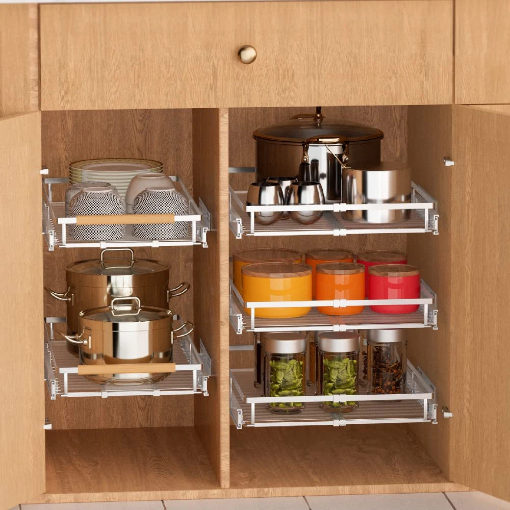 Expandable Pull Out Drawer Cabinet Organizers, Slide Out Pantry Shelves Wire ...