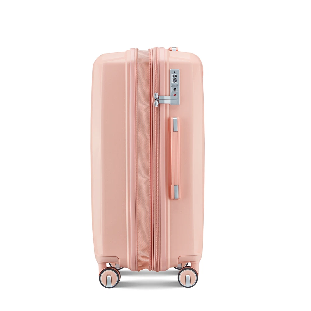 Specification Product Information Item Code:W2098P186565 Product Type:General Item Product Name:Luggage 4 Piece Sets(14/20/24/28), Hard Shell Lightweight TSA Lock Carry on Expandable Suitcase with Spinner Wheels Travel Set for Men Women Place of Origin:China Main Color:Pink Main Material:Polypropylene Product Dimensions Assembled Length (in.):Not Applicable Assembled Width (in.):Not Applicable Assembled Height (in.):Not Applicable Weight (lbs.):Not Applicable Package Size Length (in.):19.30 Width (in.):11.50 Height (in.):30.00 Weight (lbs.):26.50 Product Features Lightweight Luggage Sets: Made of environmentally friendly imported ultra-light PP material, Compared with ABS and PC plastics, PP materials suitcase have better resilience, it can be restored to its original state after being hit violently. Luggage 4 piece sets are the best choice for travel, family travel and business travel. Expandable 4 Piece Luggage Set: The 14 inch suitcase can store some daily necessities such as cosmetics, water glasses, etc. which is easy to access at any time. 20 inch carry on luggage & 24 inch suitcase is perfect for business and personal travel, 24 inch & 28 inch luggage is expandable, which can expand 25% of the additional space. Luggage with TSA Lock: TSA customs password lock design to avoid violent damage to the luggage. which allows only TSA agents to inspect your bags without damaging the lock when traveling. Silent Suitcases with Spinner Wheels: Luggage with spinner wheels can help save your strength and make your suitcase lighter. Luggage moves very silent and smoothly with 360° rotate double wheels, which better than other singer wheel. Full interior space: Travel luggage with fully lined interior has adjustable tie-down straps for securing garments in place.This roller suitcase has reinforced padded top and side handles to make it easier to lift and carry your luggage.