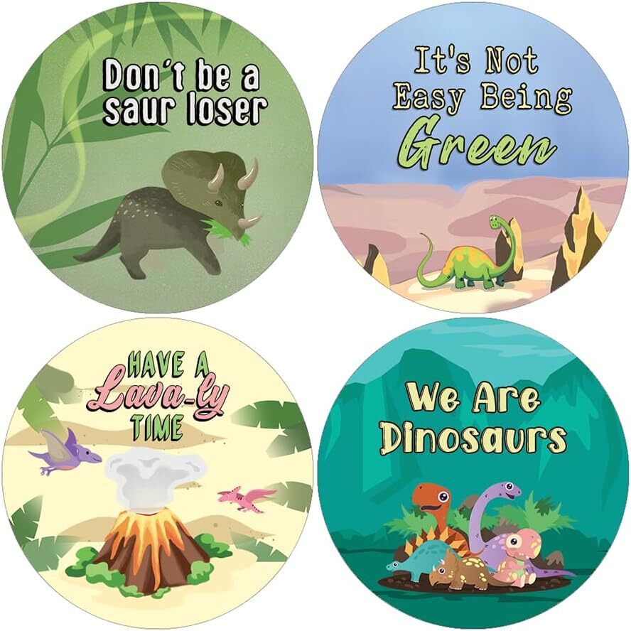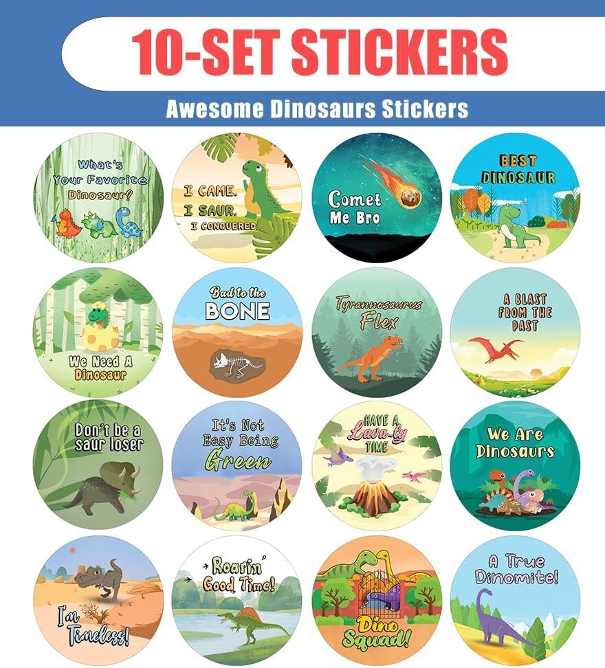 16 UNIQUE DESIGNS INSPIRING STICKERS FOR YOUR DIY PERSONALIZED DECORATIONS - Creanoso Awesome Dinosaurs Stickers (10-Sheets). These colorful and uniquely inspiring round shaped stickers are the best tool for DIY decoration and personalization of your belongings. GREAT STOCKING STUFFERS , TEACHING SUPPLEMENTARY MATERIALS, AND GIVEAWAY - Great stocking stuffers gifts for Boys, Girls, Teens, Kids. A perfect design to give during classroom school activities, home schooling,birthdays, anniversaries, family day, and any other special occasions. MADE WITH DURABLE AND WATERPROOF MATERIALS - There is a lamination or coating to make the stickers high water resistant, and WILL NOT fade from the water. The stickers can stick it anywhere you like, and it sticks there and lasts a long time. A COLORFUL AND DECOR STICKER DECAL - Each sheet with 16 individual round stickers. There are 10 sheets , with a total of 160 pcs of stickers. STICKER SIZE: 1.5 INCHES IN DIAMETER Awesome Dinosaurs Stickers (10 Sets X 16 Designs) COLORFUL AND COLLECTION OF TEXT STICKERS • Well designed. • Very encouraging. • Self-adhesive. Awesome Dinosaurs Stickers (10 Sets X 16 Designs) are super fun to collect; you can't have just one! That's why you will find a selection of stickers right here. Each package comes with different stickers in a variety of designs. Stick them here, stick them there, stick them everywhere! Everyone will love these self-adhesive stickers. These colorful stickers are perfect for any adults and these come with very inspiring messages and bright pictures. A fun, inexpensive way to add a decorative, notes, and stationery. Delight yourself with uplifting messages designs that are very encouraging. Awesome Dinosaurs Stickers (10 Sets X 16 Designs) perfect for giveaways, behavior incentives, prizes! These stickers are acid-free, nontoxic, and safe for use on photos. This product comes with a 60 days money back guarantee. You can return them to us for a full refund.