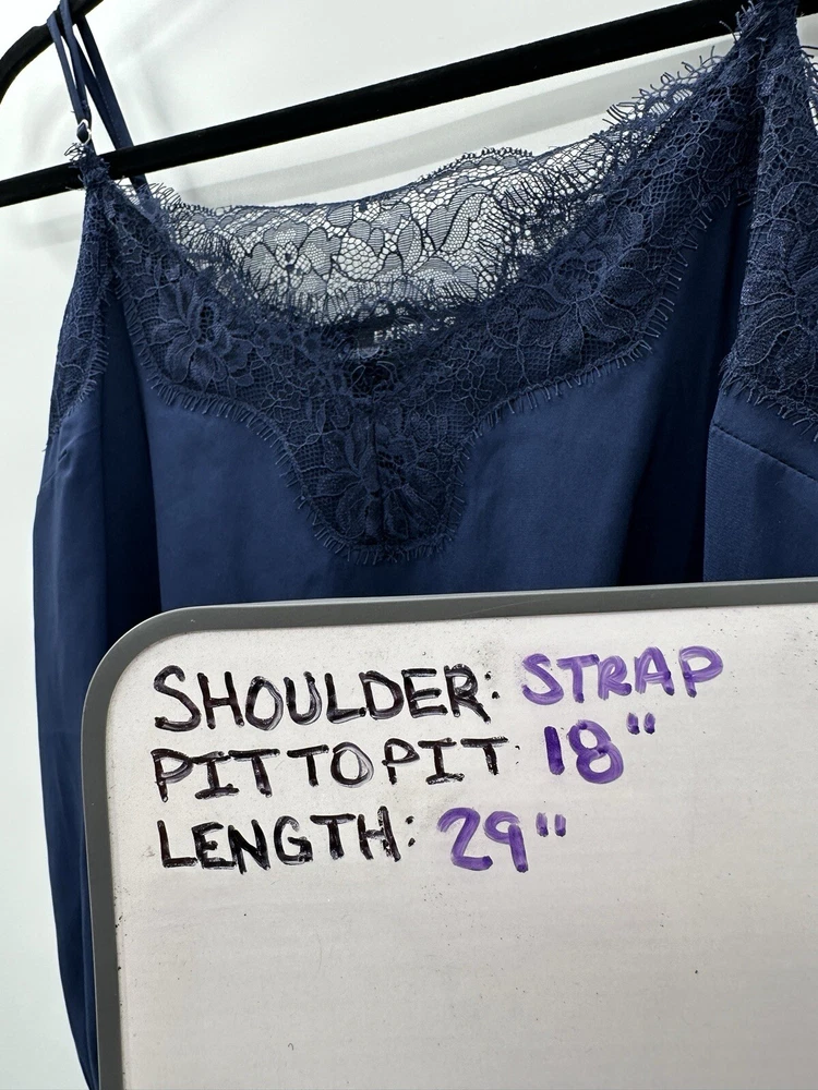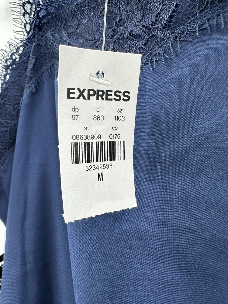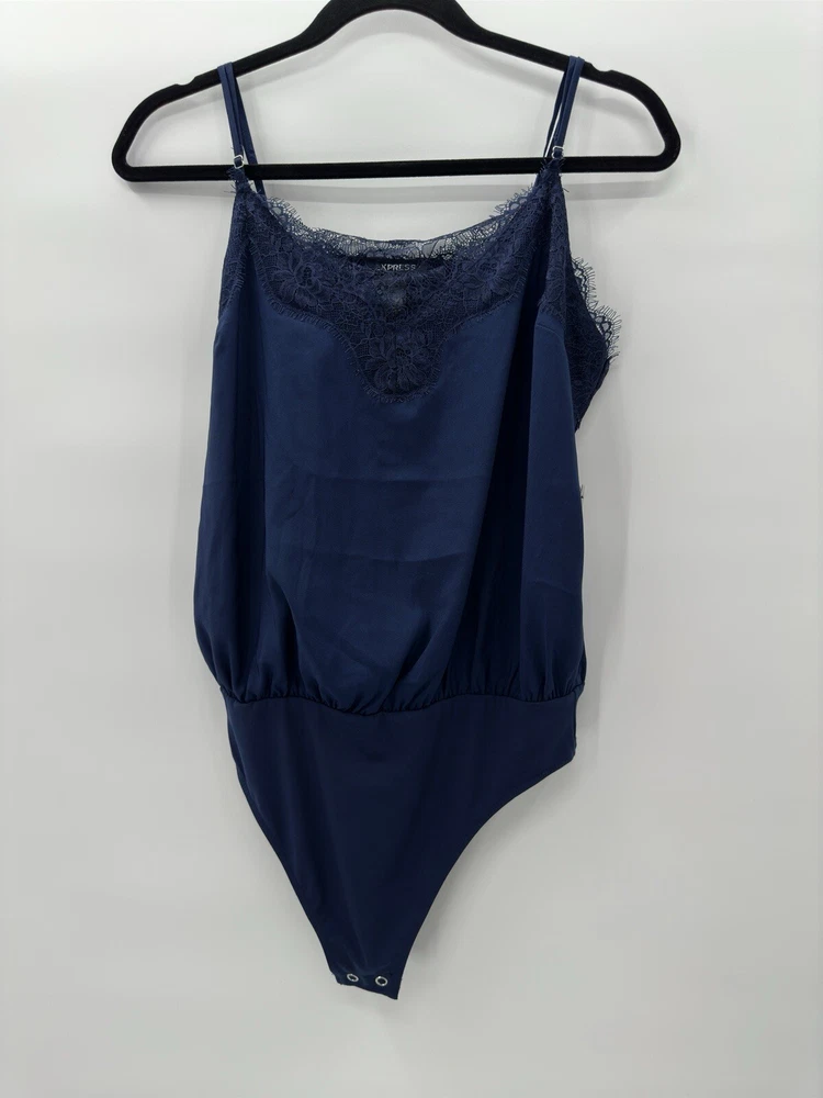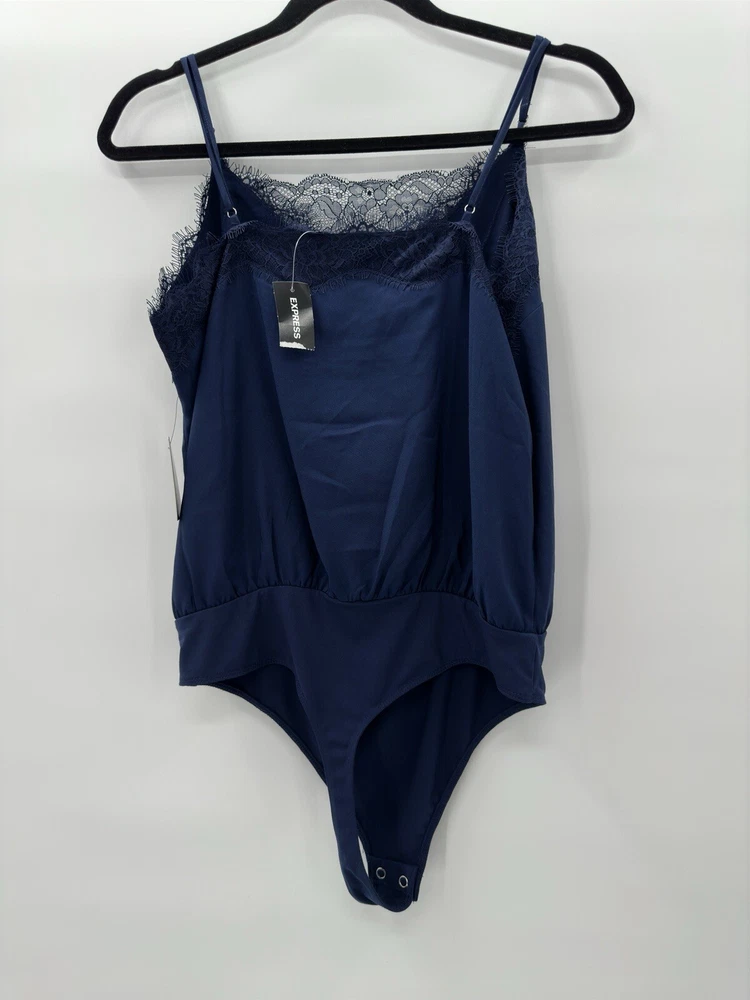 Express Lace Trim Downtown Cami Thong Bodysuit In Navy Blue Size Medium NEW With Tags. See Photos For Measurements. Thank you for the interest in our item. We take pictures to show any defects or problems with the items listed. RETURNS: Your 100% satisfaction is priority to us! We accept returns on items and will refund buyer on cost of item as long as the item is returned in the same condition as it was originally shipped within 30 days. Buyer pays return shipping. SHIPPING: We ship within 3 business days (Monday-Friday), most of the time within 24-36 hrs from time of purchase. We use ground or first class in most cases so you receive the item fast. WE WILL ONLY SHIP TO THE ADDRESS PROVIDED THROUGH EBAY. If a change of address is requested, the order will be canceled. NOTE- Shipping prices are provided directly through USPS. PLEASE CHECK OUT THE OTHER ITEMS IN OUR STORE LICKETYFLIP AND GIVE IT A FOLLOW!