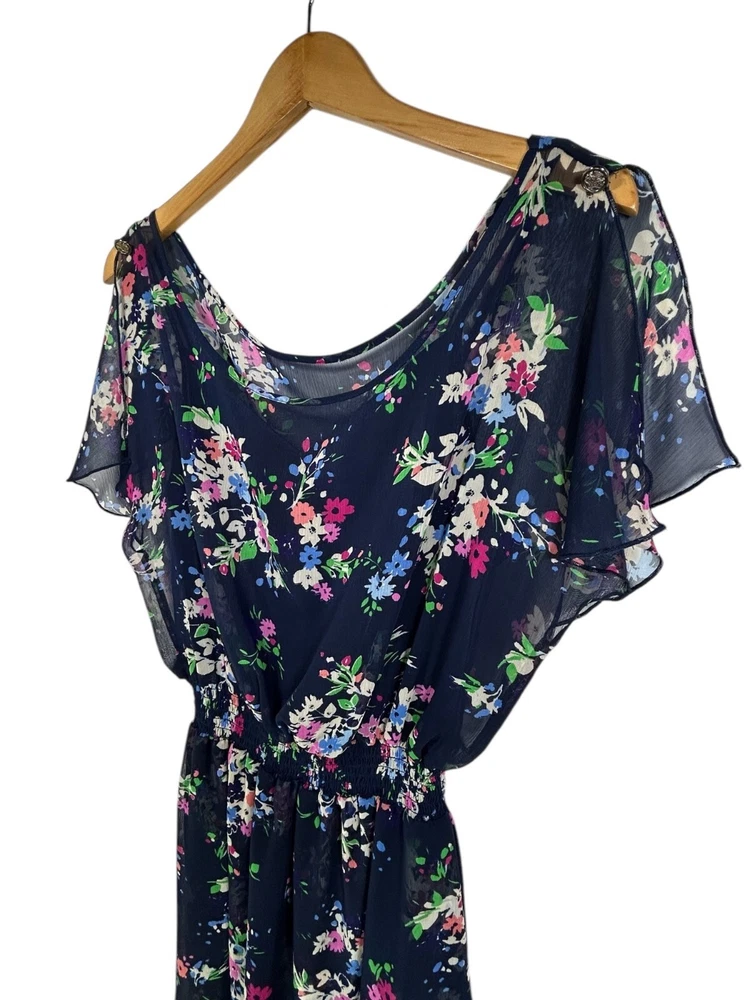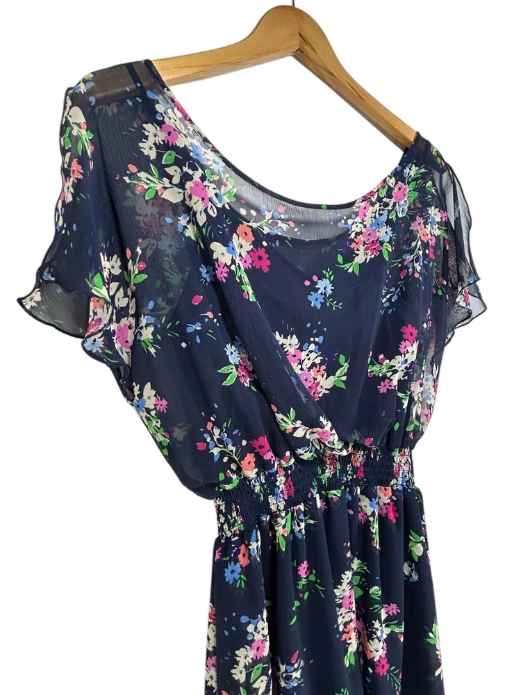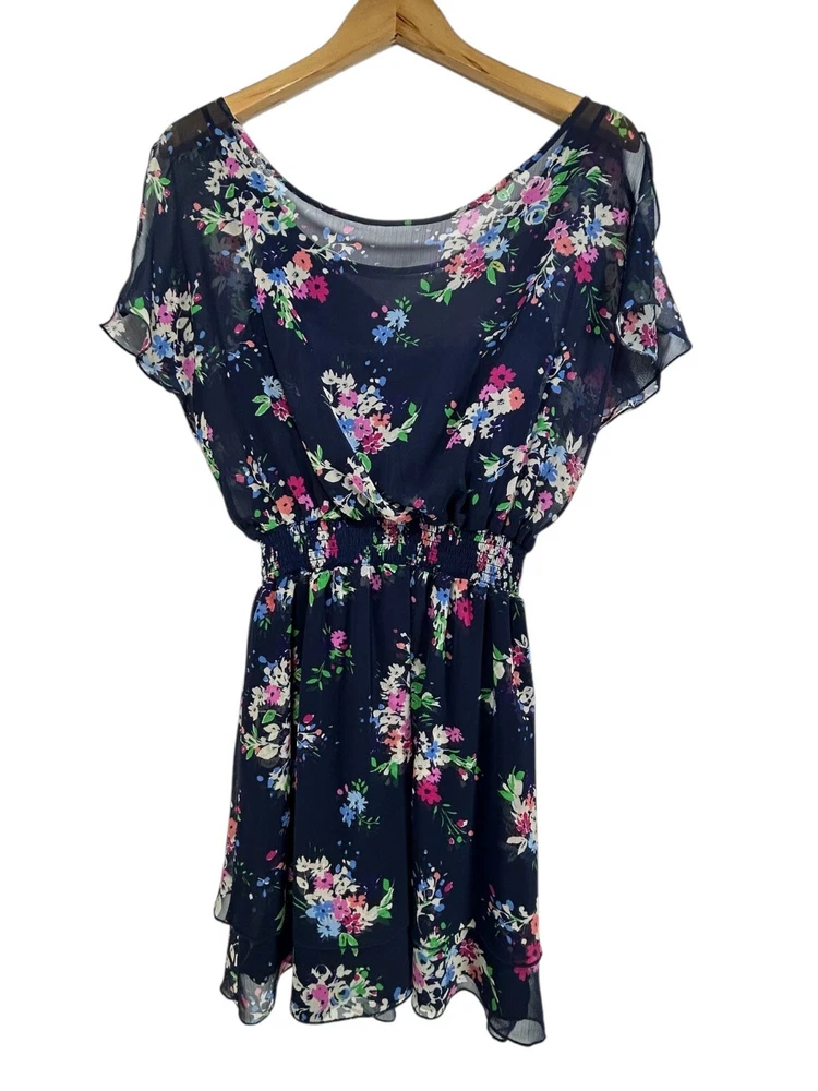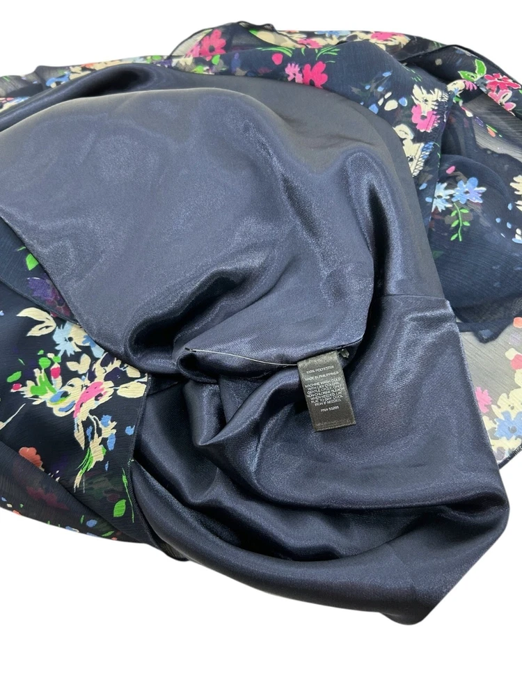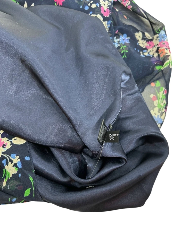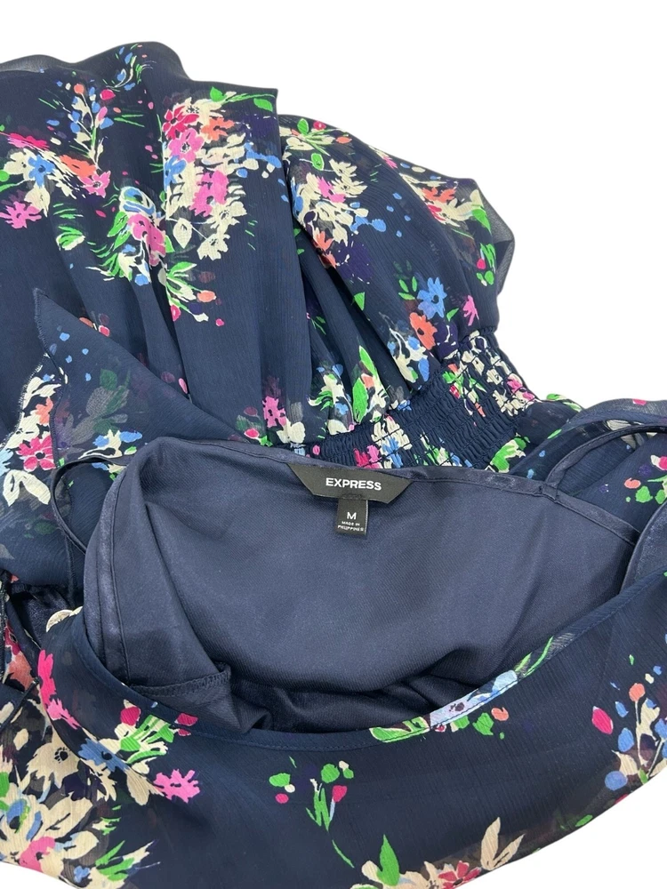 Express Mini Dress Sz M Navy Floral Chiffon Lined Dress Wedding Chic Spring