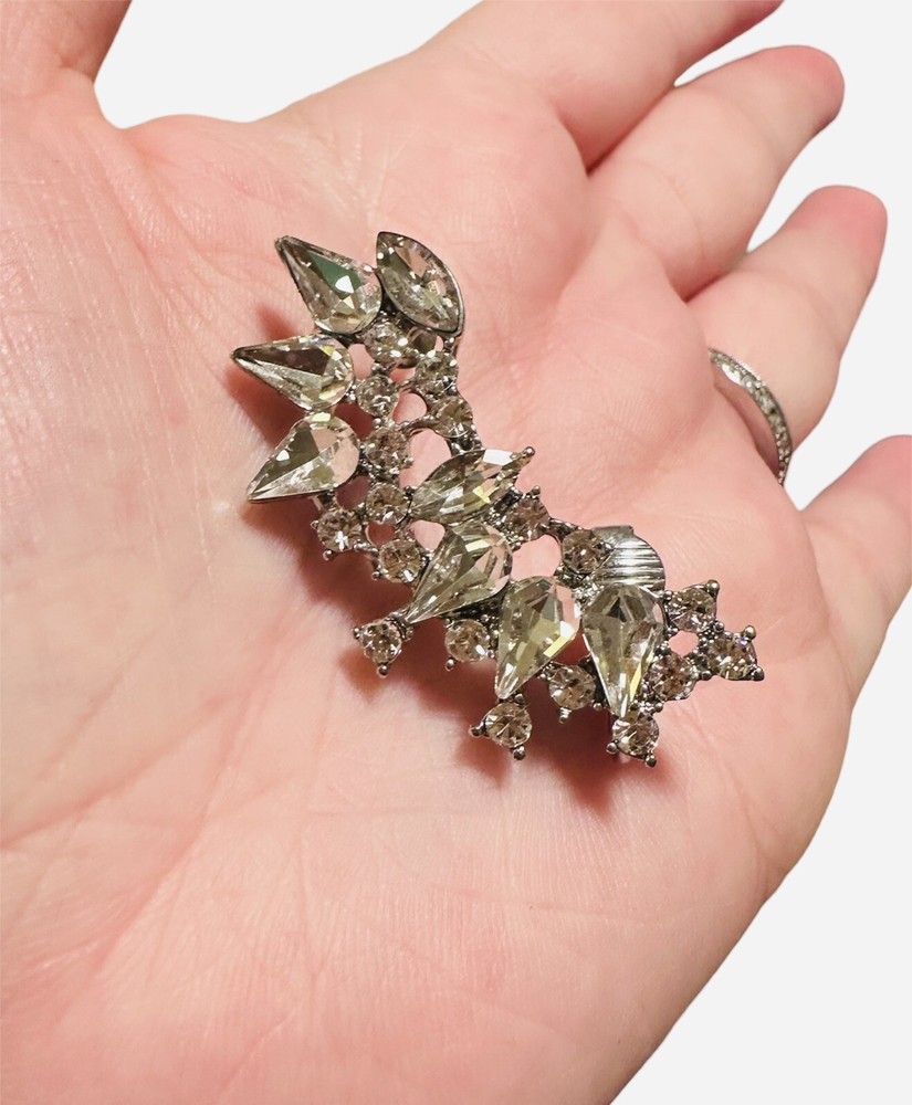 Pre-owned/Worn only once/gently worn - Express Rhinestone Crystal Cuff Clip Earring - One piece only - Fashion Jewelry. Gorgeous for a wedding or formal event. Please review photos for approximate measurements (may not be 100% exact). Mannequin photo is just to show how it is worn - however it is NOT this piece of jewelry, it is there as a reference only.