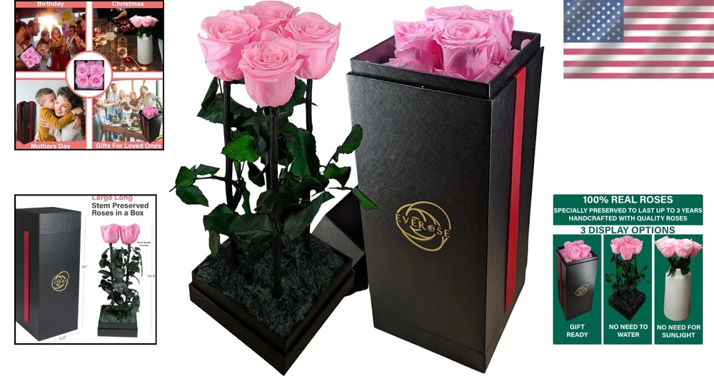 Exquisite 4 Long Stem Forever Roses – Preserved Flowers Lasting 1-3 Years ‹ › ‹ › ‹ › ‹ › ‹ › ‹ › ‹ › ‹ › ‹ › Exquisite 4 Long Stem Forever Roses Preserved Flowers Lasting 1-3 Years 🌹 UP YOUR GIFT-GIVING GAME with our long stem forever flower box. Unlike our rivals who offer only rose heads, our gift box contains 4 whole real roses that can be elegantly displayed in a vase, adding a touch of beauty to any space. 🌹 MAKE A UNIQUE STATEMENT - Delight your loved one with the joy of choosing their favorite way to showcase these stunning flowers. An exceptional and lasting rose gift that truly stands out. 🌹 HIGH-QUALITY FLOWERS - Our forever roses are meticulously processed to preserve their beauty for up to 3 years. Experience the charm of an endless rose flower arrangement with no maintenance required. 🌹 GIFTS FOR HER - Surprise your Mom, Wife, or Grandma with these exquisite decoration flowers. Perfect for Anniversaries, Christmas, Birthdays, Get Well, Thanksgiving, Thinking of You, and Valentine's Day. 🌹 BEAUTIFULLY PACKAGED WITH GUARANTEE - Delivered in an elegant gift box, ensuring a luxurious presentation. If you’re not completely satisfied with the product, reach out to us as we strive for a remarkable experience for all our customers. Why Choose Our Forever Roses? Elevate your gifting experience with our stunning long stem forever roses that offer both beauty and longevity. Unlike ordinary flowers that wilt away, these exquisite roses will be cherished and admired for years, providing a continual reminder of your love and affection. Make a lasting impression – order your Exquisite 4 Long Stem Forever Roses today and celebrate life's special moments with elegance and style! Shipping Free & Fast Shipping - We offer free shipping to most of the USA with a normal delivery time of 3-7 days. However, due to the current situation, additional delivery time (up to 3 weeks) may be required for some items. Alternative Carriers - We may use alternative carriers (e.g. USPS, FedEx, UPS, etc.) to ensure your package arrives safely and on time. Due to the use of multiple carriers, we are unable to provide a tracking number automatically. Handling Time - Orders are processed and shipped within 1-2 business days of receiving cleared payment. Shipping Restrictions - Shipping to Alaska, Hawaii, Puerto Rico, Guam, and other US territories may incur shipping charges or delivery restrictions. Please contact us before ordering, or your order can be refunded/cancelled. State Restrictions - There may be restrictions based on your state of purchase. For example, certain items may not be shipped to California due to state regulations. Contact for Tracking Updates - If you require tracking updates or have any concerns about the delivery of your order, please feel free to contact us, and we will be happy to assist you. Return 30-Day Hassle-Free Returns - We want you to be completely satisfied with your purchase. If you are not, you can return the item within 30 days of receiving it for a full refund or exchange. Easy Return Process - To start a return, simply contact us and we will provide you with a prepaid return shipping label and detailed instructions. Restocking Fee - There are no restocking fees for returns. However, the buyer is responsible for return shipping costs if the return is not due to a seller's error. Refund Processing Time - Refunds will be processed within 5 business days of receiving the returned item in its original condition. Payment We accept all major credit cards, PayPal, and Apple Pay for your convenience. Your payment information is secure and encrypted to ensure a safe and seamless transaction. Please complete your payment within 3 days of purchase to avoid any delays in shipping. Feedback Your feedback is extremely important to us. We strive to provide the best products and customer service possible. If you are satisfied with your purchase, please take a moment to leave us a positive review. If you have any concerns or issues with your order, please contact us before leaving negative feedback. We are committed to resolving any problems and ensuring your satisfaction. Contact Us If you have any questions or concerns, please feel free to reach out to our customer support team. You can contact us through the eBay messaging system. We are available Monday to Friday, 9:00 am to 5:00 pm EST, and we will do our best to respond to your inquiry within 24 hours. Buy it now and enjoy a pleasant shopping experience! UPC: Not Set Item Width: Not Set Unit Quantity: 2.12 Material: Mixed Materials,Plastic,Real Flowers,Preserved Flowers Common Name: Rose,Pink Rose,Forever Rose,Long Stem Rose Brand: Unbranded Product: preserved flower bouquet Type: Flower Bouquet Artificial/Fresh: Fresh Form: Bunch Color: Pink Occasion: Valentine's Day MPN: Not Set Theme: Not Set Size: 15 in Country/Region of Manufacture: Not Set Item Height: Not Set Number in Pack: Less Than 10 Unit Type: lb Personalize: Not Set Personalized: Not Set