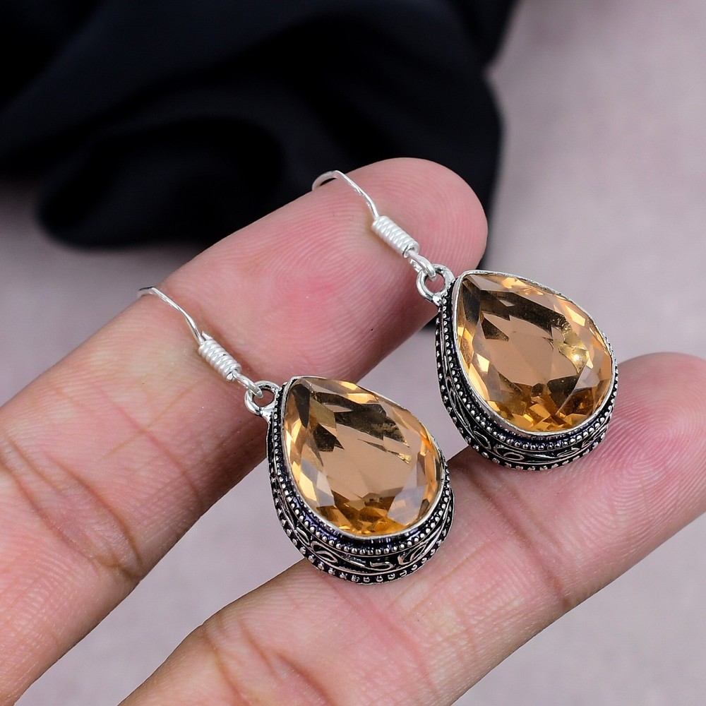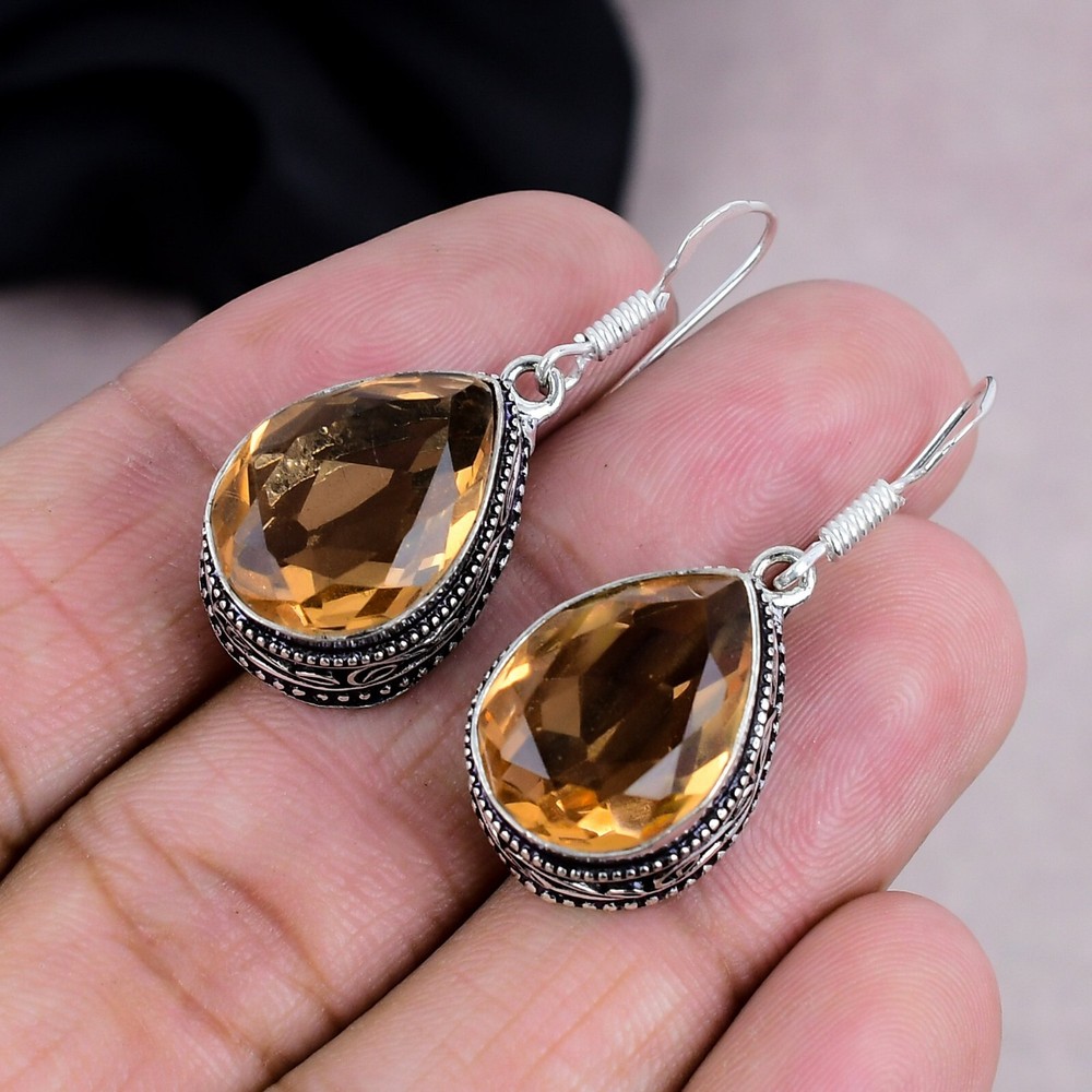 Exquisite Citrine Gemstone Dangle Earrings in Handmade Sterling Silver Jewelry