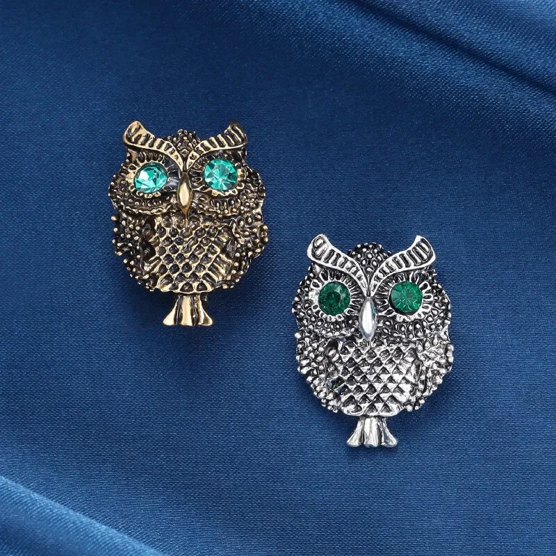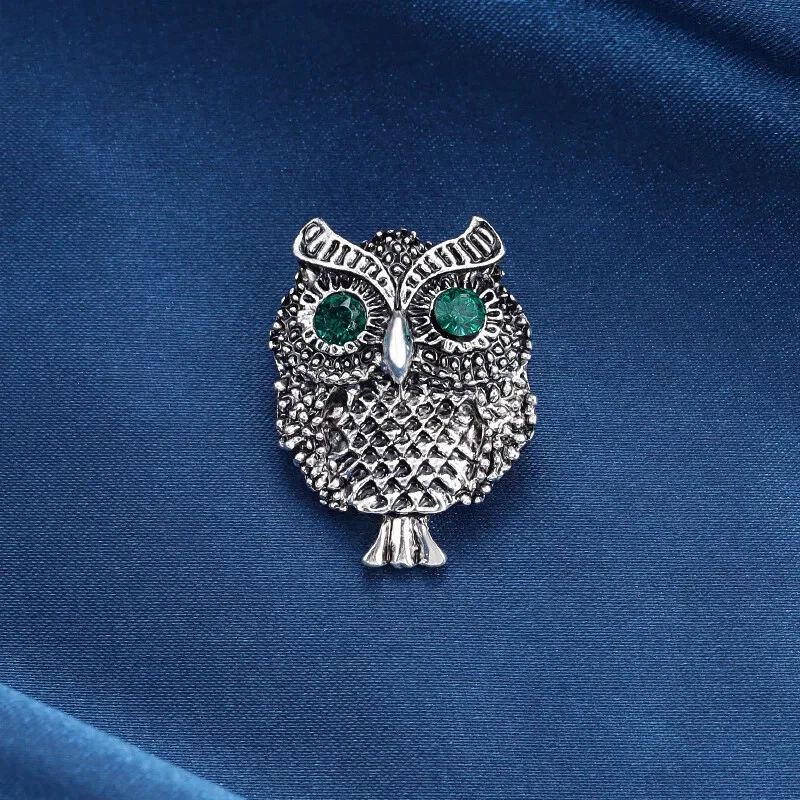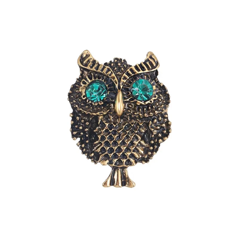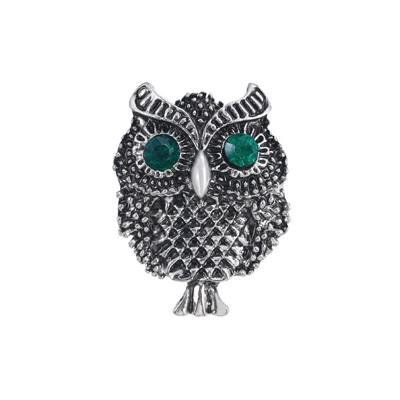 Exquisite Green Eyes Owl Brooch Enamel Rhinestone Animal Pin Jewelry Gift