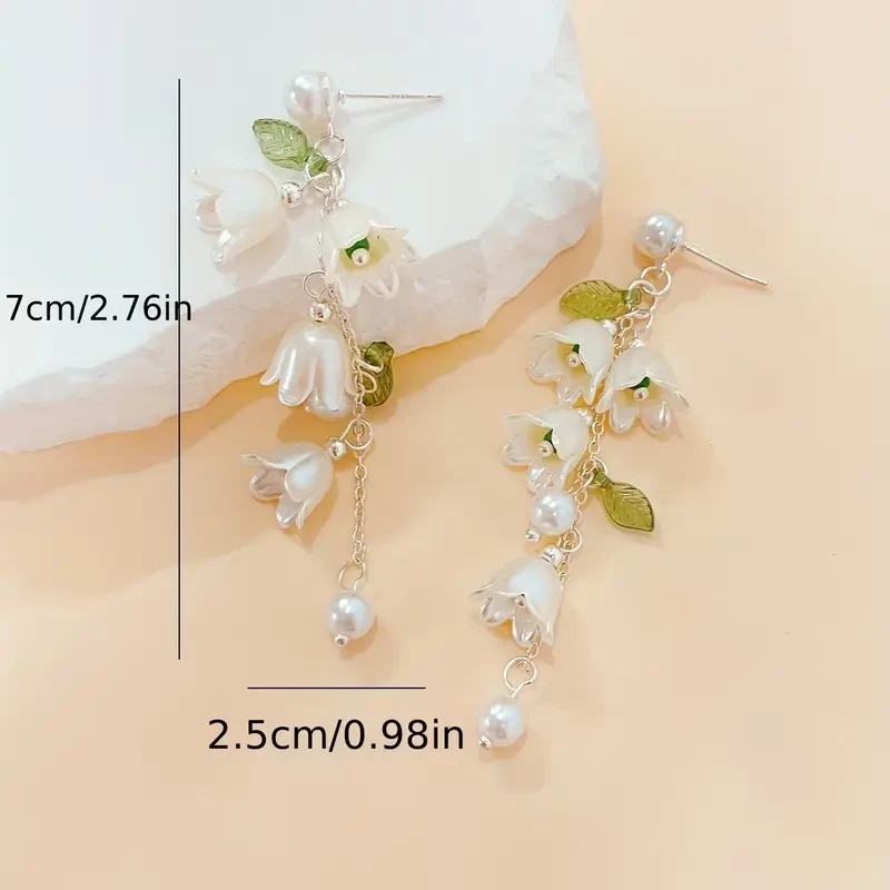 Exquisite Lily Of Valley Design Long Dangle Earrings Jewelry Vacation Gift Women