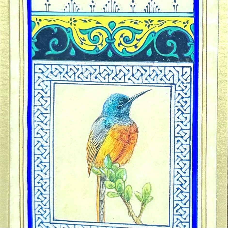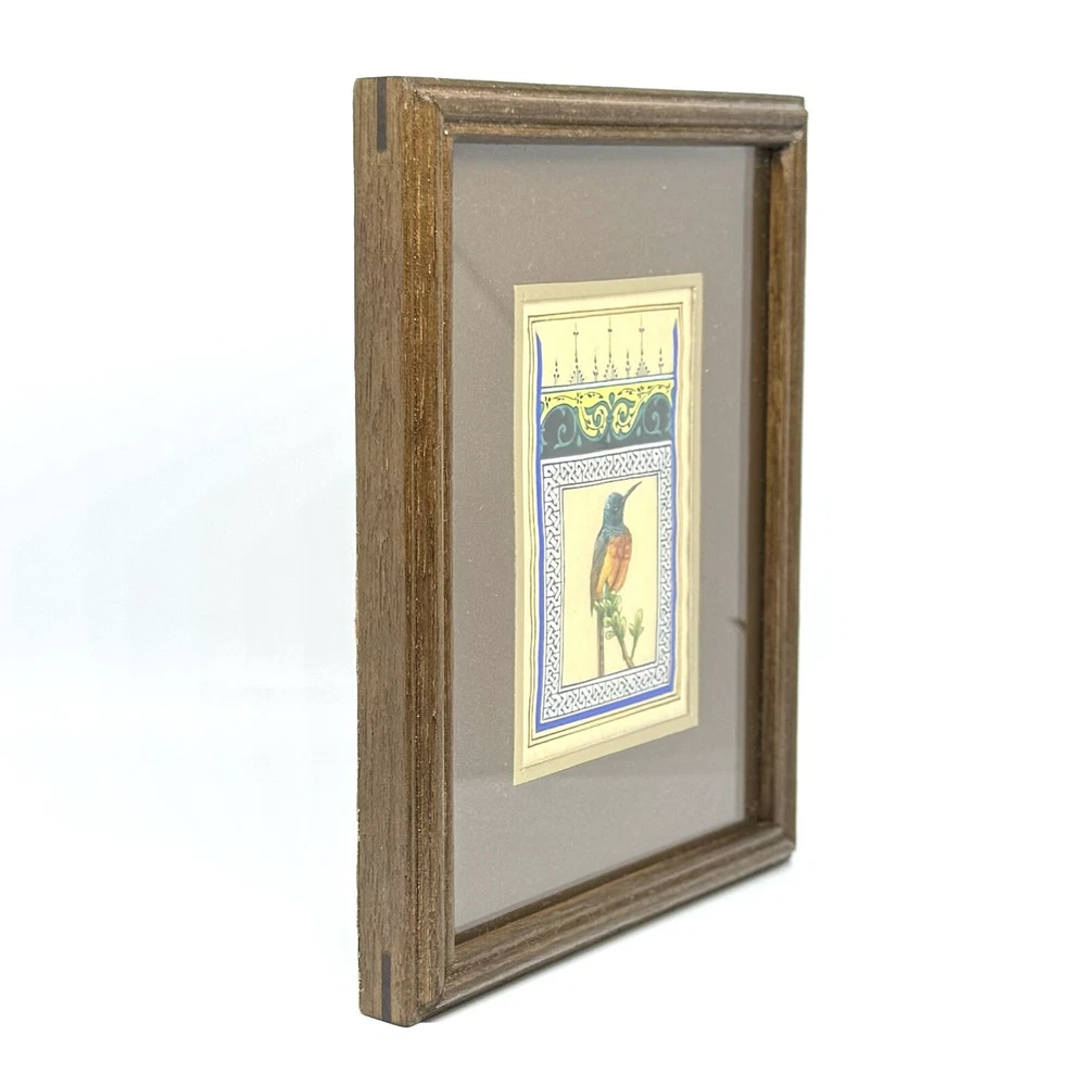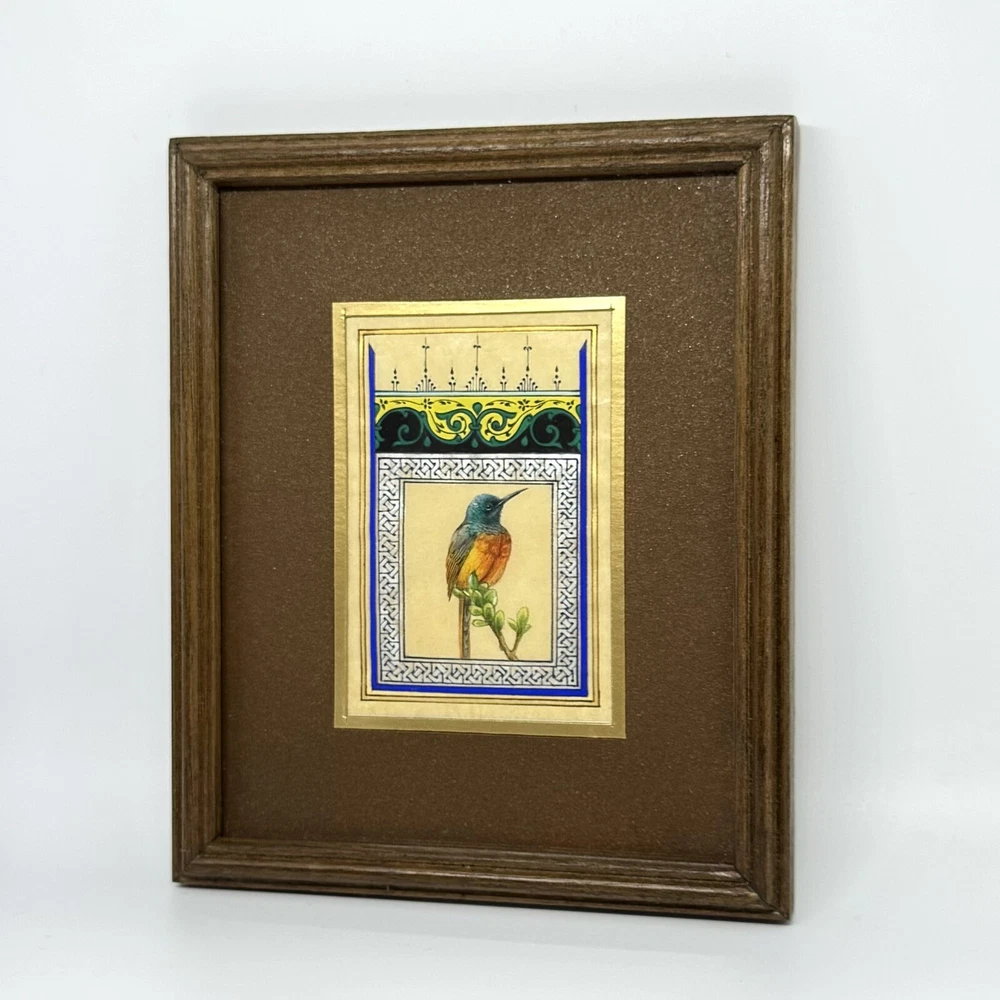 Framed Artwork: Tiny Bird Portrait ( Fine Walnut Frame, Protected with Glass, Hermetically Sealed ) An unparalleled masterpiece of miniature art, this framed portrait of a tiny bird is a testament to exceptional precision and timeless craftsmanship. Painted under a magnifying glass, the intricate details come alive through the use of a fine brush and a masterful combination of materials — including watercolor, gold leaf, gold gouache, acrylic, tempera, and liquid ink. Each element of this artwork is a harmonious fusion of nature’s beauty and ornamental design, brought to life on the finest silk paper. Encased in an elegant walnut frame, this piece is meticulously crafted to elevate any interior, exuding sophistication and artistic excellence. A true Collector’s Edition , this fine art painting embodies the spirit of luxury, rarity, and cultural richness. Ready to hang, it is perfect for collectors seeking to own a piece of extraordinary artistry. Brought to life by ARTBEHZODIYUS — where the spirit of timeless artistry and unrivaled craftsmanship unite. We also are pleased to offer a custom ( framing, sizes, colors, composition) made-to-order piece, so we encourage customers to contact us before any customizations. This ensures we provide an accurate timeline for completion and customize the piece to your preferences.