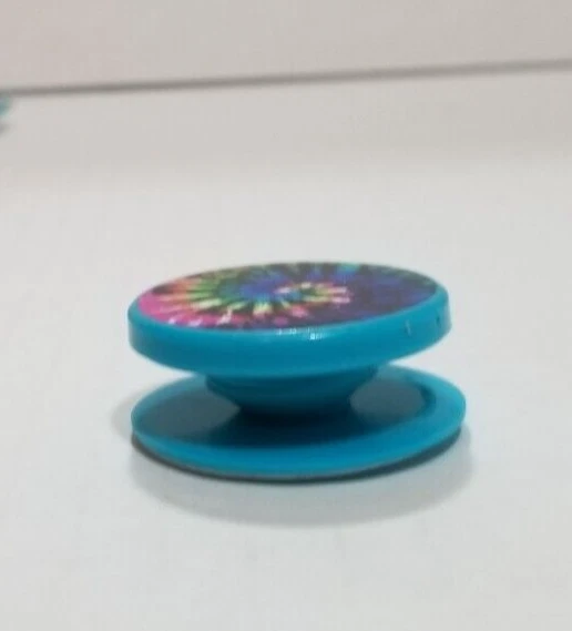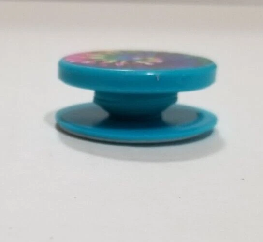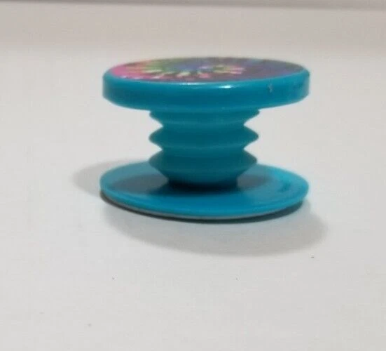 A plastic phone grip and stand in pink with a burst of multi colors on the top piece. It is extendable and flexible to allow you to hold your phone between your fingers or stand it up. In the photos, the blue grip is shown only to demonstrate the expandability and flexibility of the piece. Attaches to the phone with a strong adhesive backing, which will stick to most phones. Measures approximately 1 1/4" (3.17 cm) in diameter and 1/2" (1.27 cm) - 3/4" (1.90 cm) tall. Brand new in unopened package. Please feel free to contact me if you have any questions. Buyer to pay all shipping charges; just check the shipping calculator for your options. Thanks for looking!