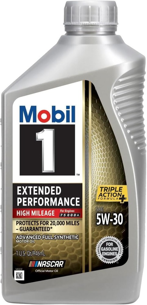 Viscosity: 5W 30 Vehicle Service Type: Car Flash Point: 500 Degrees Fahrenheit Model: Extended Performance High Mileage Item Weight: 11.92 pounds Package Dimensions: 9.64 x 9.05 x 7.63 inches Item model number: 123842 Manufacturer Part Number: 123842 Viscosity: 5W 30 Vehicle Service Type: Car Flash Point: 500 Degrees Fahrenheit Liquid VolumePackage Information: 192 Fluid OuncesBottle 1 Extended Performance High Mileage full-synthetic motor oil 5W-30 is designed for engines with over 75,000 miles to go up to 20,000 miles between oil changes.* Utilizes 1’s Triple Action+ Formula to combine outstanding engine performance, protection, and cleanliness with the added benefit of power Meets ILSAC GF-6 standards to help provide low-speed pre-ignition (LSPI) and timing chain wear protection while keeping your engine clean and helping to improve your fuel economy Provides excellent internal engine heat protection (up to 500 degrees F) and low temperature protection (to -40 degrees F) Helps extend engine life by working to prevent damaging deposits and sludge buildup You trust your car to keep you going—even after 75,000 miles. 1 Extended Performance High Mileage full-synthetic motor oil 5W-30 gives engines with over 75,000 miles the extra care they need to go the distance. Formulated to help prevent leaks, it helps to protect critical engine parts for up to 20,000 miles between oil changes—guaranteed.* Utilizes 1’s Triple Action+ Formula to combine outstanding engine performance, protection, and cleanliness with the added benefit of maximized engine power. This cutting-edge formula is recommended by for all types of modern vehicles, including high-performance, turbo-charged, and supercharged gasoline and diesel multi-valve fuel-injected engines found in passenger cars, SUVs, light vans, and light trucks. 1 is America’s #1 synthetic motor oil brand at retail,** trusted and recommended by car builders and experienced mechanics, and is the Official Motor Oil of NASCAR®. (*Protects for up to 20,000 miles or 1 year, whichever comes first. To learn more about the 1 Limited Warranty, visit. **Source: The NPD Group/Retail Tracking Service/Dollar Sales/PCMO full-synthetic/52 weeks ending September 30, 2023)