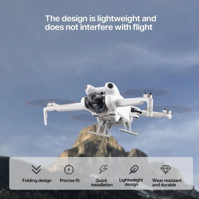 Features: Effectively increase the ground of the drones to protect the fuselage from damage. It can effectively improve the aircraft's adaptability to the ground environment during takeing off and landing, avoiding ground debris of the fuselage or damage to the lens. Lightweight that does not affect flight Foldable for convenient storage. Quick installation and disassembly. Specifications: ABS Color: Gray Applicable Model: for 4 Package Includes: 1x Folding Height Extender Landing Gear note: Please allow 1-2cm errors due to manual measurement. Please allow for slight color differences due to different display resolution.